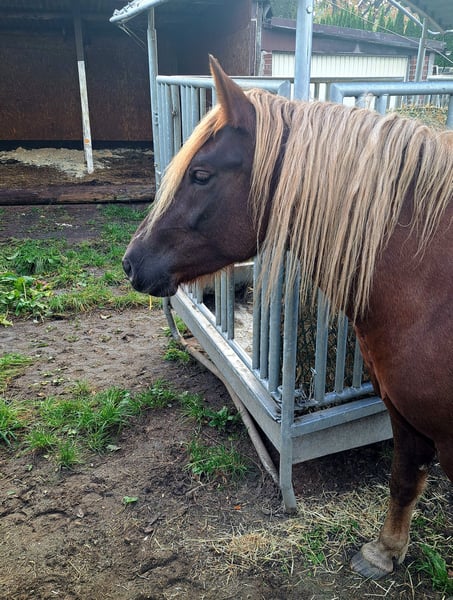 Helaas moet ik mijn 4-jarige dochter van VICTOR/ROSENKAVALIER, "Hexle", verkopen, omdat mijn levenssituatie veranderd is en ik haar niet de mentale en fysieke uitdaging kan bieden die ze verdient en nodig heeft. Ze is momenteel net onder de minimummaat van 1,48 m en is in 2025 voorzichtig aangeleerd, over een periode van vijf maanden. Ze gaat solo (in gezelschap van een wandelaar of fietser) of onder begeleiding het terrein in, kent grondwerk en longeeren. Ze rijdt veilig met de trailer. Ze is braaf bij de smid en de dierenarts, die haar beiden regelmatig hebben verzorgd. Daarnaast is ze erg kindvriendelijk en attent. De foto's zijn niet recent en stammen uit de zomer/herfst 2024 of 2025. Als veulen werd ze met zilver gepromoot. Ze staat in 29229 Celle, Nedersaksen. Voor meer details kunt u bellen naar 0162/1070512. Ik kijk uit naar uw telefoontje!