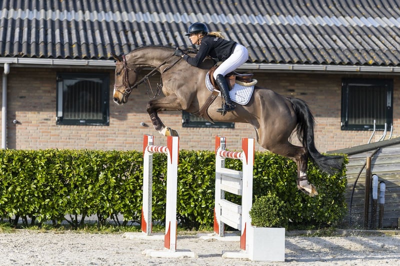 Chapeau’s Fly High is een fijn groot sportpaard met een goed karakter en een zeer aangename rijdbaarheid. Een paard dat direct vertrouwen geeft en geschikt is voor een brede doelgroep, van amateur tot semi-prof. Hij laat zich makkelijk rijden en heeft een comfortabele, opwaartse galop die de ruiter een fijn gevoel geeft. Op de sprong toont hij veel vermogen, een goede inzet en een constante manier. Hij springt met overtuiging, trekt goed aan naar de sprong en maakt het werk makkelijk voor de ruiter. Een paard dat kwaliteit combineert met gebruiksgemak. Hij heeft ervaring op 1.30m niveau en laat zien dat hij dit met gemak aankan. Met zijn instelling, galop en manier van springen is hij niet alleen een fijn springpaard, maar ook zeer interessant voor de Amerikaanse markt als equitation paard. Vader Chapeau Ciaco springt op 1.20m niveau en is een zoon van Clintas (1.40m), uit de bekende Clinton-lijn. Moeder Lucie is een dochter van Ciaco’s Son S (1.50m) en komt uit een degelijke Duitse prestatiestam. De moederlijn brengt meerdere sportpaarden: Ciacopharina (1.30m) meerdere paarden op 1.30m–1.45m niveau Een stam met sportaanleg en gebruiksgerichtheid.