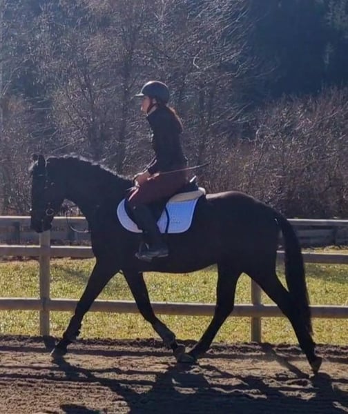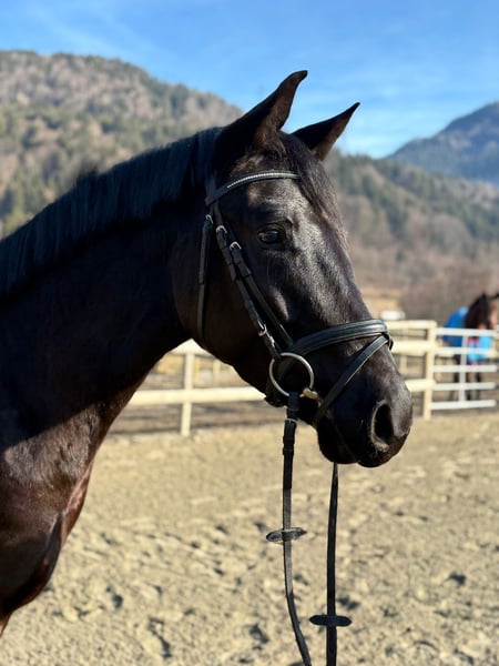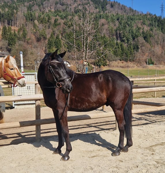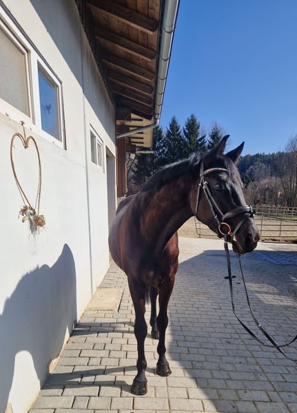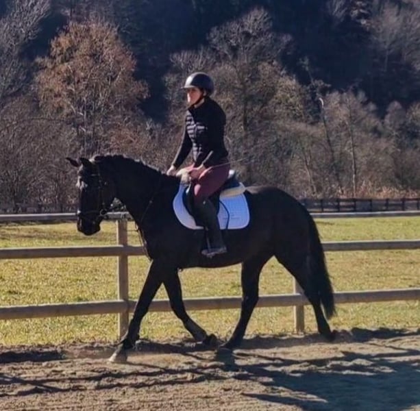 Promising, self-bred 4-year-old Austrian Warmblood gelding – excellent upbringing, interesting dressage potential We are offering a promising, self-bred 4-year-old gelding from loving, careful breeding. The elegant black stallion without markings impresses with his presence, excellent basic gaits, and balanced temperament. Pedigree: Sire: Revanche de Rubin – dressage-oriented stallion with very good rideability scores, known for type, movement quality, and willingness to perform. Dam: Dancer – Irish Sport Horse, successful in eventing up to L level, with a lot of heart, willingness, and honest character. About the horse: Austrian Warmblood (ÖWB) 4-year-old gelding Height: 158 cm Color: Black without markings Age-appropriate training and gentle backing Currently barefoot He was raised in a herd environment, allowing for excellent social development. As a result, he is very well-behaved, well-mannered, human-oriented, and absolutely straightforward in daily handling. Age-appropriate, he still shows playful traits but remains clear-headed and balanced. Healthy, free of vices, with a solid foundation. Under saddle, he is eager to learn, rideable, and motivated. His very good, elastic basic gaits make him particularly interesting for dressage. At the same time, he offers excellent qualities as a refined leisure horse. He will only be sold into the best hands. Sale exclusively to a serious buyer with right of first refusal. We look forward to hearing from you for a personal contact if you are genuinely interested.