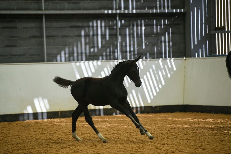 Beeindruckende Stutfohlen von Fidertanz aus einer Dancier-Mutter (durch Embryotransfer). Mit hervorragenden Gängen und einem freundlichen, neugierigen Temperament. Letzten Monat bei der AES-Futurity mit Gold bewertet, erzielte sie durchweg Noten von 8 und höher, wobei die Highlights ihr Schritt, ihre Konformation und ihr Trab waren, für die sie eine Bewertung von 9/10 erhielt. Sie ist gut im Umgang, wurde regelmäßig vom Hufschmied betreut und ist es gewohnt, mit ihrer Mutter in einer Herde zu leben. Besichtigung und tierärztliche Untersuchung sind möglich.