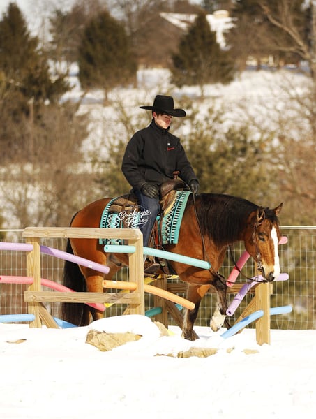 Then, we give the horses a break for up to one month. This allows us to see how the training will stick with them. If they come back in the same place they were before the break we know they are ready to move through the rest of the program and become finished Buckeye Acre Farm horses, learning all of the fun crowd pleasing tricks. We feel we have one of the best soundness guarantees in the business, and we will stand behind that.