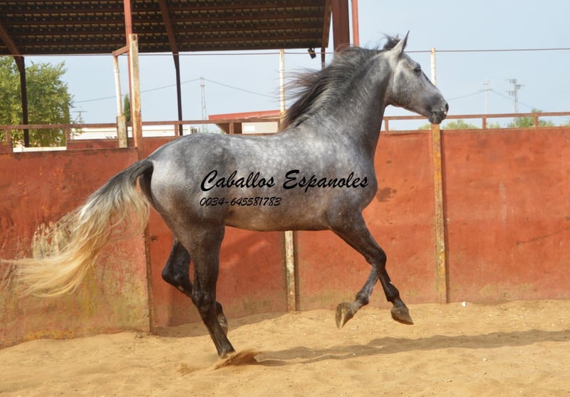 Ein toller, großrahmiger PRE Wallach, der jetzt richtig anfängt seinen Körper aufzufüllen. Er steht auf einem soliden Fundament, begleitet von einen harmonischen Gebäude. Dieser Wallach ist mit 3 sehr guten Grundgangarten ausgestattet ist in den Grundgangarten geritten. Er kann Schulterherein, Schenkelweichen. Dabei zeigt er sich immer sehr brav und arbeitet gerne mit. Im Gelände war er auch schon. Der Wallach ist gut nachzureiten. Sein Züchter hat väterlicherseits auf den Mejorante Hengst Ules, der wiederum Sohn den Elitehengstes Impaciente (Camacho Benitez) ist, gesetzt. Mütterlichseits haben wir ein Yeguada Militar Stute, die Tochter des Pampero V (Marín García) ist. Das Pferd wird im Auftrag verkauft. Er kann gerne bei uns noch in Beritt bleiben. Eine AKU wird kurzfristig organisiert. Internationaler Transport.