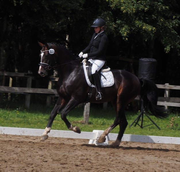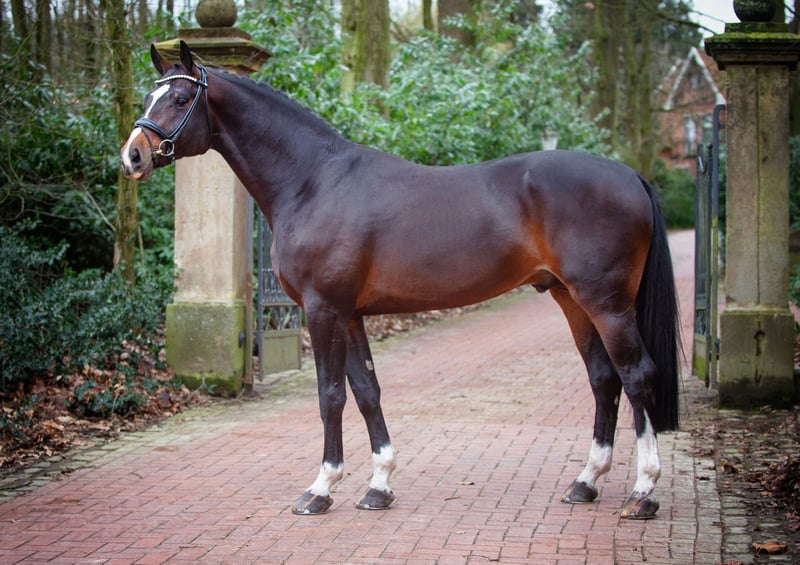 Hermoso semental con licencia, tipo y patas largas, hijo de una de las ultimas yeguas premiadas de la Verband por Donnerhall. Con licencia para OS, OL, DSP. Stud fee a petición. Los primeros potros nacieron este verano y cumplen todas las expectativas. La madre es una madre semental, yegua premium y una absoluta rareza de cría debido a su pedigrí y descendencia. Su hermano también tiene licencia. Ya se han realizado pruebas genéticas, es como su padre homocigoto oscuro, no tiene factor rojo y por lo tanto no puede producir zorros. Como nació muy tarde (agosto), sólo fue domado cuidadosamente a la edad de 3 años y presentado con chicas en un concurso hípico al final de la temporada, que dominó como un veterano con 7/8 notas a pesar de estar cubierto. En otoño completó su HLP (salto de 50 TT) como el participante más joven de la historia. También allí, a pesar de su corta edad y sin equiparación de edades, se impuso a los caballos de 4-6 años con las mejores notas. Uno de los pocos sementales jóvenes que no tuvo que ser atado con cuerda. Ha ganado su tercera clase A de salto de obstáculos y es el único semental de 4 años que se ha clasificado entre los de 5 y 6 años con 8 puntos. Recientemente ganó la medalla de bronce en la final de los Campeonatos Dobrocker Deister Jumper en su primera competición de salto de nivel elemental. Convence por su calidad y su conformación. Su facilidad de montar, su voluntad de aprender y de rendir inspira cada dia de nuevo, pero siempre equilibrado y tranquilo como un veterano. También es un sueño en el campo. Absolutamente ningún comportamiento de semental a pesar de haber sido utilizado para la cría. Al igual que su padre y sus hermanos, también tiene un claro pedigrí doble. Un joven talento que está madurando y que sin duda seguirá los pasos de su exitoso padre. Con el entrenamiento adecuado, sería el cazador ideal para el mercado americano, al igual que sus muchos hermanos. Salta los cambios con seguridad, siempre relajado y cuidadoso con un gran comportamiento. Desciende de nuestro ganador de licencia, ganador de HLP y finalista de BuCha "Cafe au lait", que lleva tiempo llamando la atención con su increíblemente exitosa descendencia en doma y salto (también se puede ver en el sitio). Es uno de los pocos sementales que puede presumir de tener hijos exitosos en ambas disciplinas hasta el nivel avanzado. Cafe's Casimir" (Cafe au lait x Calido x Grannus) fue el célebre ganador del primer premio en la subasta Oldenburg Elite, ganador en serie en doma de nivel medio (M) a una edad temprana y ganador en serie de nuevo en sus primeras competiciones de doma de nivel avanzado (S) a la edad de 7 años. Ahora triunfa en las clases internacionales de Intermediaire I. La yegua de Kasselmann, Cafe's Caletta (Cafe au lait x Calato), ya ha ganado doma S*** y Gran Premio internacional. Cafe's Matts (Cafe au lait x Don Frederico) fue el segundo caballo de doma más caro en las ventas mixtas de verano de Oldenburgo. Otros caballos jóvenes hijos de madres orientadas al salto ya se han clasificado varias veces en pruebas para caballos jóvenes de doma clásica de nivel principiante a medio y son extraordinariamente fuertes y lúcidos. No cabe duda de que los hijos de Cafe au lait convencen en salto hasta el nivel avanzado. Nuestro licenciado Cafe's Champus fue subcampeón del mundo de caballos jóvenes con René Tebbel y también se utiliza para la cría. También con licencia y de nuestro programa de cría: Cafe Junior (Cafe au lait x Silvio I), clasificado internacionalmente en concursos de salto de nivel avanzado (S*). Cafe's Columbo (Cafe au lait x Belstaff), con licencia en Francia y gran éxito en concursos de salto de caballos jóvenes. El propio Cafe au lait fue finalista del Bundeschampionat con Philipp Weishaupt y ha tenido éxito hasta el nivel avanzado (S***) en salto de obstáculos, pero también tiene tres aires impresionantes y ha sido entrenado hasta el nivel avanzado (S) en doma clásica. Estacionado con Paul Schockemöhle, ya ha sido padre de varios saltadores de éxito internacional, entre ellos "Royce" (Cafe au lait x Grandilot), vencedor del FEI CSI5* 500.000 $ Rolex Grand Prix Wellington. Por supuesto, se dispone de una radiografía y un certificado clínico muy buenos.