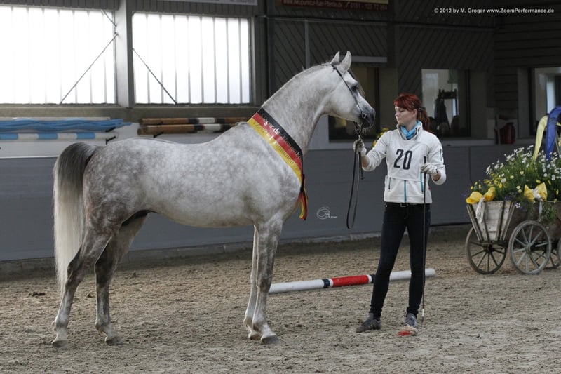 Stallone eccezionale per tipologia, andatura e carisma! Vincitore della licenza Radiant Luhmühen del VZAP 2012, HLP Hünfeld. Campione e punteggio più alto della sfilata della collezione Seefeld 2015 Vincitore di classe e campione nazionale riserve ad Aquisgrana 2019 ! Puledri pluricampioni Suo figlio Camar Qbinec è stato autorizzato nel 2019 e ha anche vinto l'HLP del VZAP a Marbach nel 2019 con 7.55 e il campionato di bronzo ad Aquisgrana nel 2019 Nel 2020, sua figlia Camar Qinea ox a.d. Camar Qalifa ox, che ha vinto un premio nel VZAP, è stata accettata nel Trakehner SB I come candidato premium con 55,5 punti e nel programma GP Nel 2021, un figlio e un nipote sono diventati puledri da campionato con un punteggio elevato presso l'Associazione Trakehner Arian Shah ha completato con successo la sua stagione degli amori a Marbach nel 2023 e lavorerà come al solito a Bad Oldesloe nel 2024. Tassa di allevamento 2024: Purosangue arabi € 1300,--, tutte le altre razze € 750,-- Prole da visitare Ammessi al VZAP e.V., altre associazioni su richiesta Foto: zoomperformance.de