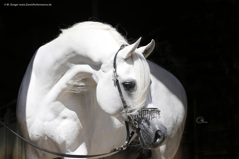 Exceptional stallion in type, gear and charisma ! Radiant winner Luhmühen of the VZAP 2012, HLP Hünfeld. Champion and highest score of the Seefeld Stock Show 2015 Class winner and national reserve champion in Aachen 2019 ! Several winner's foal, a daughter was 3rd in the SLP, his daughter Camar Qinea was association premium mare VZAP His son Camar Qbinec was selected in 2019 and also won the HLP of the VZAP in Marbach with 7.55 in 2019 and the bronze championship in Aachen 2019 Arian Shah is available in 2020 via Fresh Seed Shipping via Frahm/Aukrug station. Please register in time ! Offspring to visit Cover tax for Arabic Volblut . € 1500,-- Other breeds: € 750,-- Single deck approval for Trakehner photos: zoomperformance.de