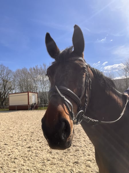 On behalf of the breeder, we are offering a solid 10-year-old DSP mare. She has primarily been used for breeding and was only recently backed. During her last competition season, she managed to place several times in LS jumping classes, although it should be noted that she is quite demanding in the arena and not an easy ride. Additionally, she is of breeding interest, with her dam’s line producing international success up to 1.50 m. She is an honest, completely reliable horse in handling, having even participated in a festive parade, making her an excellent choice as a leisure horse as well. She is being sold due to a reduction in the herd and is only to be placed in very good hands. If interested, I am happy to facilitate contact.