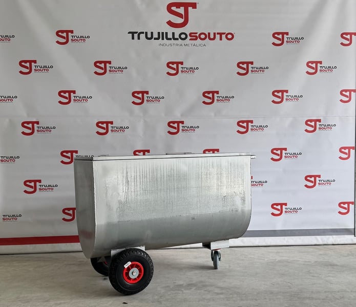 Carro de pienso ergonómico con tapa, válido para sólido y líquido, con posibilidad de ponerle tapa y