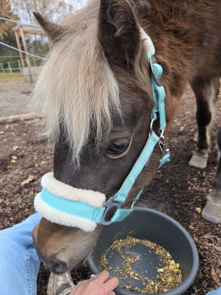 Verkaufe Classic Pony Wallach, 6 Jahre, 1.20m - freizeitgeritten, unerschrocken und charakterstark Zum Verkauf steht Joka, bei uns seit 2021 und im Herdenverband aufgewachsen, absolut sozial und verträglich. Er verfügt mit 1.20m über eine attraktive Größe und ist ein selbstbewusstes und willensstarkes Pony - kein reines Anfängerpony. Trotz eigenem Charakter ist er absolut gutartig, unerschrocken und 100% verkehrssicher, zeigt sich im Umgang ruhig und souverän. Joka ist freizeitmäßig im Gelände geritten, mit und ohne Sattel, von Kindern und einer leichten Erwachsenen. Er ist geimpft und regelmäßig entwurmt, die Zähne wurden 2025 komplett gemacht. Er steht im Paddock Trail und kennt Heu ad libitum, was er gut verträgt. Aufgrund einer höheren Rehe-Sensibilität wird er nicht in reine Wiesenhaltung abgegeben; stundenweiser Koppelgang ist jedoch unproblematisch. Joka wurde bislang nicht gefahren, bringt dafür aber beste Voraussetzungen mit: Er ist gelassen, lerneifrig und nervenstark. Die Ausrüstung kann auf Wunsch mitgegeben werden. Für Joka wird ein passender, ponygerechter Platz gesucht. Platz vor Preis! Für ein Probereiten wird eine Gebühr von 30,- Euro erhoben, die beim Kauf verrechnet wird. Bei Interesse freue ich mich über eine aussagekräftige Anfrage mit kurzer Vorstellung. Privatverkauf ohne Sachmängelhaftung. Garantie oder Gewährleistung wird nicht übernommen.