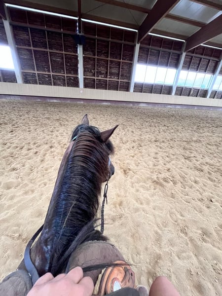 Khaleesi ist freizeitmäßig im Westernstil geritten und kennt Gelände sowie Straßenverkehr.