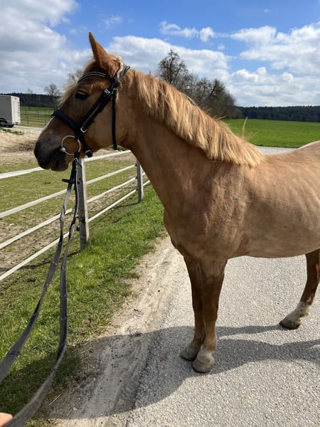 Our beautiful mare is looking for a new home due to a cartilage ossification in her front left hoof. Despite this challenge, she has always been reliable and well-behaved during our children's camps and has blessed us with three adorable foals. Thanks to her calm temperament and patience, I could easily see her as a therapy horse. If you are interested or have any further questions, please feel free to contact me!