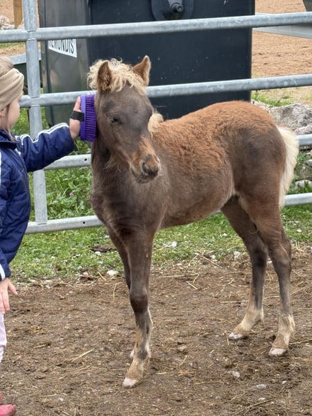 Nous recherchons un foyer aimant pour notre adorable poulain hongre Classic Pony. - **Race :** Classic Pony - **Année de naissance :** 2025 - **Couleur :** Bai foncé - **Taille au garrot :** 113 cm - **Domaine d'utilisation :** Attelage Ce talentueux hongre se distingue par son caractère amical et ouvert. Il a une excellente nature et, avec beaucoup de potentiel pour l'avenir, il est prêt à vivre de nouvelles aventures avec vous. Il pourra déménager dans son nouveau foyer à la fin décembre. Des photos des parents sont en ligne ! Pour toute question ou intérêt, nous serons ravis de recevoir votre message !