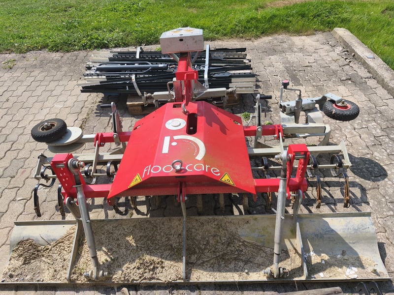 Reitbahnplaner floor-care Trail 2,3 m von LS-Lingemann gebraucht, guter Allgemeinzustand Baujahr: 5/2021 Gewicht: 345 kg Glätterwanne und Garzinkenreihe sind mittels Oberlenker individuell einstellbar. Die besondere Form der Glätterwanne erzielt eine Art Zwangsführung des Bodens und somit besonders gute Ergebnisse beim Abziehen. Glättwanne sorgt für Tretschicht ohne Vertiefungen, sodass das Wasser gut über die Oberfläche ablaufen kann. Inklusive Hufschlagräumer. Ein Teil der Garzinken ist leicht verbogen. Videos beim Hersteller unter https://www.floorcareplaner.de/trail Nur an Selbstabholer.