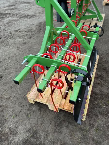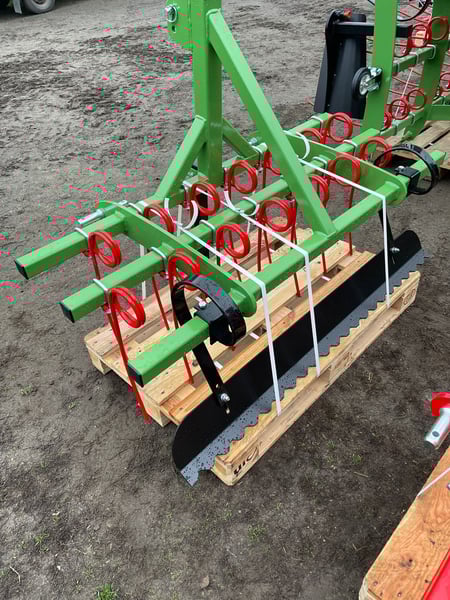 Geradeausrichtungsvorrichtung mit zwei Reihen Ausgleichsfedern und einer Schabelliste. Maschinengewicht: 102 kg. Arbeitsbreite: 1500 mm. Versand direkt auf Palette. +48 516x433x134