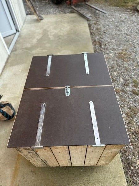 Verkaufe hier eine tolle Heuraufe für Selbstabholer. Länge: 114 cm Breite: 88 cm Höhe: 76 cm Mit Deckel oder ohne Deckel erhältlich Gerne bei Interesse melden.