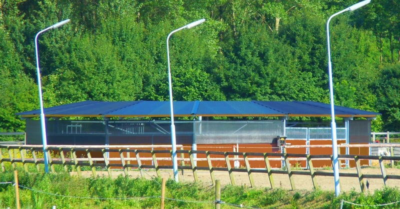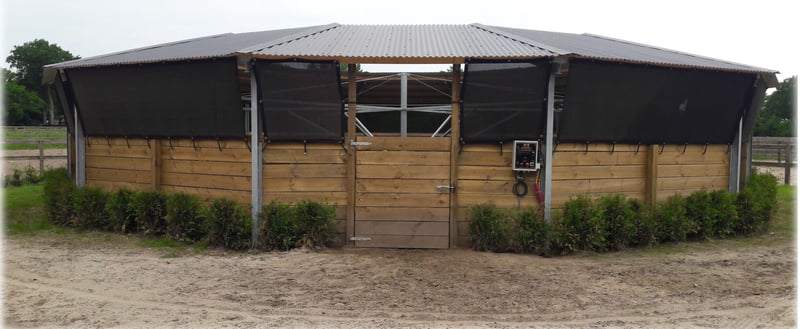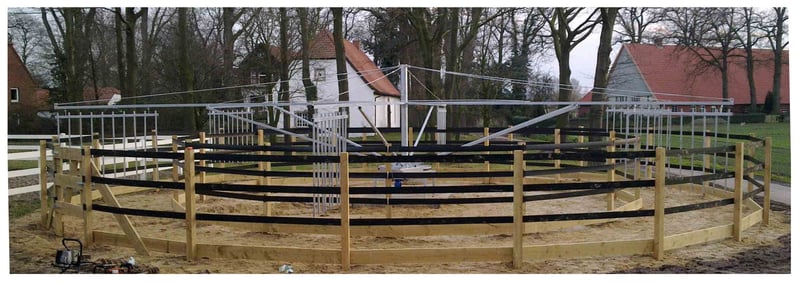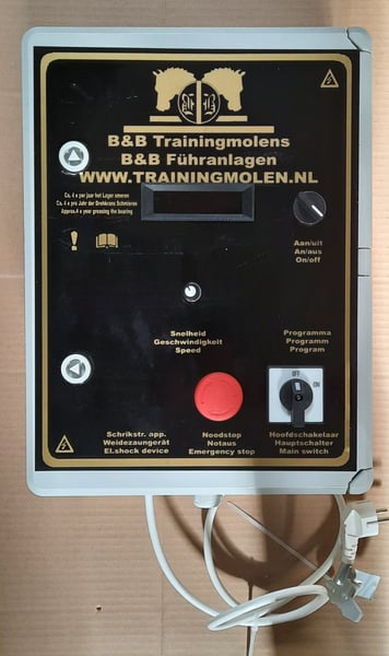 Beschreibung neue Führanlage : 10 bis 12 und 13 bis 15 Meter 4 Pferde, 16 bis 20 Mtr 6 Pferde mit Alu Rohre Treibgitter Garantie: 2 Jahren Feuerverzinkt Einfache Montage Keilriemen Antrieb Stufenlos einstellbare Geschwindigkeit Laufrichtung links/rechts automatisch einstellbar Treibgitter leichte Alu-Stangen Schreckstrom vorbereitet Total Preis 3.751,- (inkl. MwSt.) 10 bis 12 Mtr Total Preis 4.114,- (inkl. MwSt.) 13 bis 15 Mtr Mögliches Zubehör: Extra Schutzkasten für Steuerungskasten Programm Kasten Schreckstrom Automatische Schmierung Führanlage Beregnung Kreis Münzautomat Innen- und oder Außenumzäunung Hufschlagüberdachung Inkl Mw.Steuer. www.trainingmolen.nl B&B Führanlagen Emmercompascuum(Holland) Tel.: +31 613370755