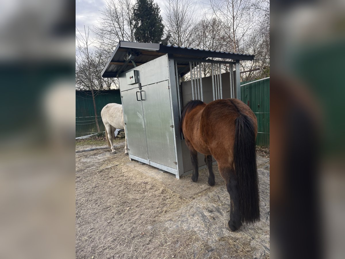 INNOVATIVE FUTTERMASCHINE aus Finnland: Zeitgesteuerte Heufütterungsmaschine für Pferde. Bis zu 12 Mal täglich können sich die Wände öffnen. Fütterungsdauer selbst bestimmbar. (Direkt am Gerät oder via Handy) Optionen: Model mit 6 oder mit 9 Fressplätze. Hochwertiges, finnisches Design. Der Heuraufen simuliert das natürliche Fressverhalten der Pferde, was für die Gesundheit von entscheidender Bedeutung ist. Angepasste, regelmäßige Fütterung beugt Koliken und Übergewicht vor! Spart ausserdem Unmengen an Zeit für die Eigentümer. Bringt Zufriedenheit bei den Pferden, da sie immer etwas im Magen haben. Geeignet für sowohl Ponys als auch Pferde. Sehr stabile Konstruktion. Einfaches Heubeladen durch eine Tür und ausreichend Platz für einen großen Rundballen. Notwendig ist einen Stromanschluss. Preise: 6 Fressplätze: € 5.800,= (zzgl. MwSt.) 9 Fressplätze: € 6.900,= (zzgl. MwSt.) Dachpaket: € 430,= (zzgl. MwSt.)