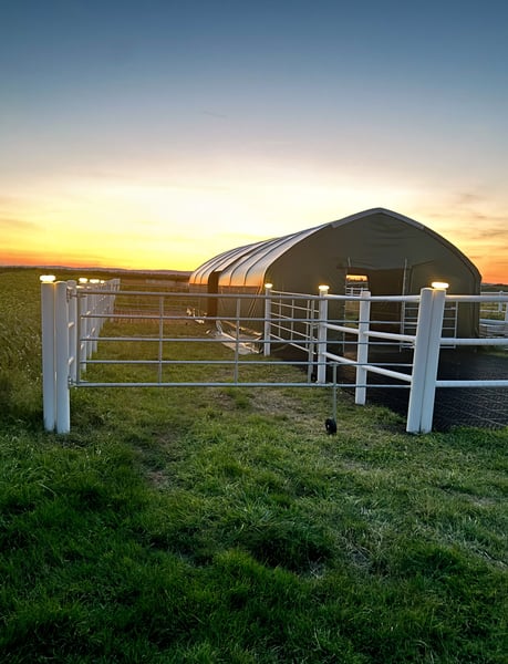 ✓ Garantierte Qualität mit Garantie ✭ ️Wetterfest & unerschütterlich ❆ Ganzjährig einsetzbar ▸ schnell aufgebaut Unsere Edelross️ Zelte sind statisch geprüft, garantieren höchste Qualität und Langlebigkeit. Auf die Planen dürfen wir Ihnen daher eine Garantie von 10 Jahren gewähren. Was macht unsere Zelte so einzigartig? → Wie gemauert: Rohre aus verzinktem Stahl mit einer Wandstärke von 3,25mm das stärkste auf dem Markt → Geprüfte Qualität aus Europa: statisch geprüfte Bauweise → Ideal für Pferde: seitliche höher, Stangenabstand größer → verhindert Hängenbleiben → Extrem belastbar: Plane mit hoher Reißfestigkeit und langer Lebensdauer → Ganzjährige Witterungsbeständigkeit: zertifizierte PVC-Außenhülle für einzigartige Temperaturresistenz → Dauerhaft oder mobil: hohe Flexibilität durch einfachen Auf- und Abbau → Ersatzteile: alle Ersatzteile können kurzfristig geliefert werden → Vielseitig einsetzbar: Offenstall, Koppel, Tierunterstand, Lagerzelt, Heulager → Auf/Abbau: mit zwei Personen in kürzester Zeit → Inkl. Sturmsicherung: Standard auf Boden oder Beton → To Go: kann mit Radlader, Frontlader oder mit Handkraft verschoben werden → Ausstellerzelt: Besichtigung in 2232 Deutsch-Wagram möglich → verschiedene Varianten: Mit Dach,- Seitenverkleidung (auch aufrollbar) mit Rückwandpanel oder ohne. → Planenfarben: moosgrün, lichtgrau, achatgrau, elfenbei und weiß → Verfügbare Zeltgrößen: 4x4, 4x6 mit Rundbogen sowie 6x4, 6x6, 6x8, 6x10 und 6x12 mit Giebel. Edelross️ Weidezelte im Detail: ✭ Wie gemauert: In höchster Qualität gefertigt: Die Rohre aus verzinktem Stahl überzeugen mit einer Wandstärke von 3,25 mm. Die Dachbögen werden verzugfrei kaltgebogen, sodass das Metall seine Festigkeit behält und nicht spröde wird. Durch die statisch geprüfte Rundbogen-Bauweise ist die Standsicherheit und Belastbarkeit optimal. ✭️ Eine Plane für extreme Belastungen: Die hochfrequenzverschweißte Plane überzeugt nicht nur durch ihre Dicke, sondern auch durch ihre Flächenstabilität, die Verformungen verhindert. Die höhere Beschichtungsdicke sorgt für eine lange Lebensdauer und hohe Reißfestigkeit. Diese robuste Plane, wie sie auch bei LKWs verwendet wird, hält selbst extremen Belastungen stand. ✭ Ideal für Pferde: Die seitlichen Paneele sind 1,8 m hoch, was den Pferden viel Kopffreiheit bietet. Im Gegensatz zu herkömmlichen Weidepaneelen bieten unsere Paneele einen Abstand von 40 cm zwischen den Stangen, wodurch ein Hängenbleiben der Pferde effektiv verhindert wird. ️️✭ Ganzjährige Witterungsbeständigkeit: Mit einer zertifizierten PVC-Außenhülle bieten unsere Weidezelte eine einzigartige Temperaturresistenz. Egal ob heiße Sonnenstrahlen oder kalte Winternächte - das Material behält seine Integrität und Funktionalität. ✭ Schneller Aufbau: Das Design der Zelte ermöglicht eine einfache Montage und Demontage. Der Aufbau des Rundbogenzeltes kann von zwei Personen in nur 2-3 Stunden mühelos abgeschlossen werden. ✭ Vielfältig und mobil: Egal ob für die mobile Nutzung oder dauerhafte Einrichtung auf Koppel, Weide oder Hof - unsere Rundbogenzelte sind die ideale Wahl im Freien. Der Unterstand bietet eine hohe Flexibilität bei der Platzierung; er lässt sich flexibel mit einem Radlader, Frontlader oder auch von Hand verschieben. Zu groß? Zu klein? Individuelle Anpassungen? Wir haben haben in unserem Sortiment unterschiedliche Konfigurationen und Größen. Preise schon ab 2.416,67 € zzgl. Mwst (2.900€) inkl. Statik und Standard Bodenbefestigung. ☏ Wir beraten Euch gerne. EDELROSS️ Rundbogenzelt, Weidezelt, Weideunterstand, Unterstand, Pferdeunterstand, Lagerzelt, Garagenzelt, Pferdestall, Schafstall, Garage für Auto, Geräteunterstand, Maschinenhalle Frei-Haus-Lieferung nach Österreich oder Deutschland möglich Bei der Bestellung wird versichert, dass ein LKW jeder Größe anliefern kann. Sollte das nicht möglich sein bitten wir um vorherige Kontaktaufnahme. Für die Entladung steht geeignetes Gerät wie Stapler oder Traktor bzw. Ähnliches mit Staplergabeln bereit. Alternativ kann das Zelt auch mit zwei Personen in Einzelteilen entladen werden. Versandkosten und genaue Preise siehe Onlineshop.