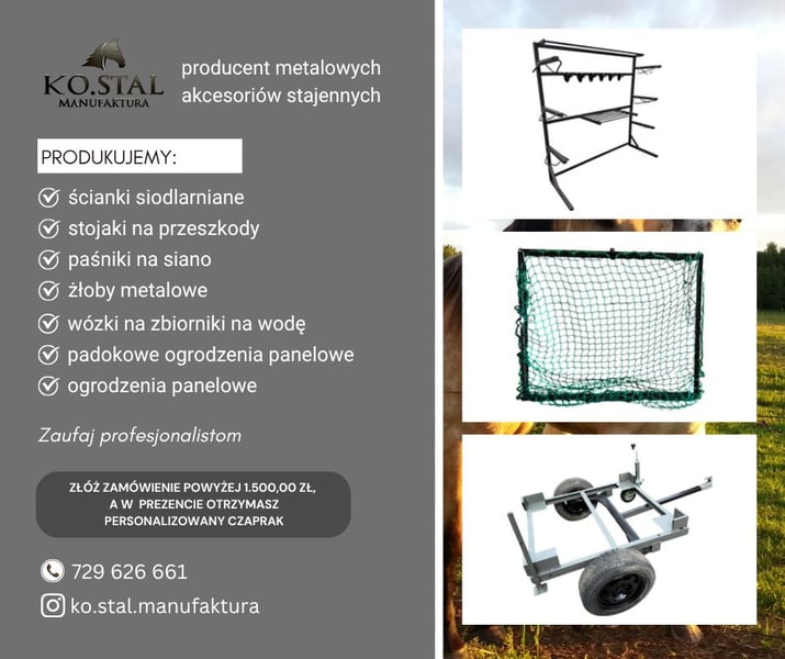 Pojemna siatka na siano na stalowej ramie. Ekspresowy montaż i łatwe ładowanie siana. Zmieści co najmniej jedną, dużą kostkę siana. Standardowe wymiary: 110x90 cm (możliwość dopasowania wymiaru do potrzeb Klienta). Oczko siatki: 4,5cm lub 2,5cm Oferujemy wiele innych akcesoriów stajennych. Zapraszamy do koń
