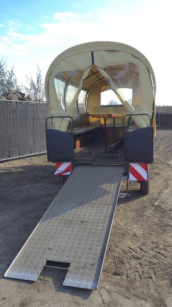 Schöner Planwagen für die Fahrt ins Grüne zu verkaufen. Räder 16 Zoll Straßenprofil , 4 Scheibenbremsen, Feststellbremse, Kurbelbremse, Lichtanlage, Innenbeleuchtung, 3 Personen Bocksitzbank vorne, Sitzbänke hinten für 14 Personen, Doppeltreppe hinten zum Hochklappen, Barrierefreies einsteigen mit Rampe möglich. Spurbreite: 180 cm Geeignet für Pferde von 145cm-170cm. Bei Interesse freuen wir uns auf Ihre Mail. pferdetaxe.werneuchen@gmail.com Abholung bevorzugt! Der Preis ist VB!!! Eine Lieferung kann innerhalb eines gewissen Umkreises gegen Aufpreis durchgeführt werden, schreiben Sie uns hierfür bitte an, um mögliche Details zu klären.