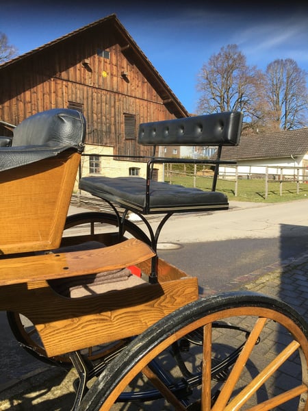 Top Zustand, sehr gepflegt! - ein-und zweispännig fahrbar - bis 4 Sitzplätze - Polster der Sitzschale aus Leder - 2 Kühnle Kutschenlampen - 2-er Sitz zum Einstecken mit Lederpolster - Original Abdeckplane als Staubschutz aus KU Interessanter Preis auf Anfrage