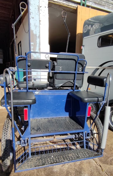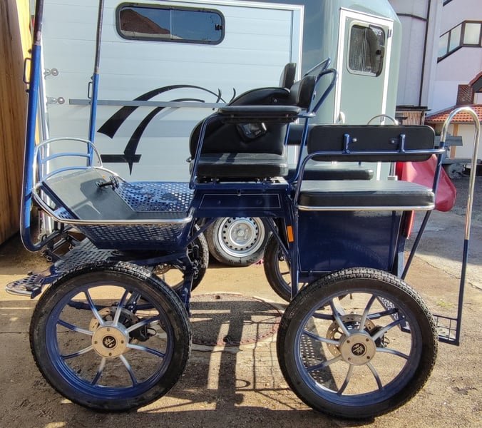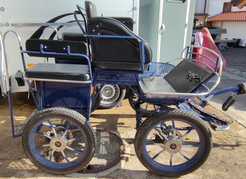 Gut erhaltene Kutsche für Ponys abzugeben, unfallfrei. Gezogen bei mir mit Isländer (1,35Stkm) und Tinker (1,48Stkm) im Ein- als auch im Zweispänner. Ausrüstung für Ein- und Zweispänner mit dabei. - Vorder- und Hinterradscheibenbremsen - Blattfederung - Spurbreite: 1,10m - Bockhöhe: 1,00m - Aufstiegshilfe - Vorder- und Hinterräder 19" Luftbereifung, Trialprofil - Staufach unter dem Fahrersitz - 2 Sitzplätze hinten (Sitzbank jeweils 53cm lang) - Einspännerschere - schwebende Zweispännerdeichsel - Hersteller Kutzmann - Gewicht lt. Hersteller ca. 190 - 220kg Neupreis: ~5100€ Verkaufspreis: 2500 VHB