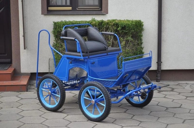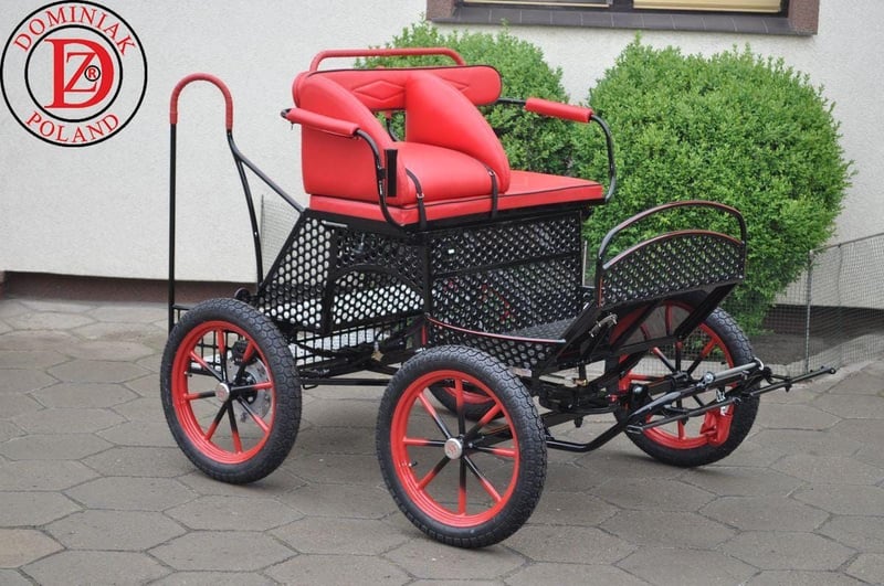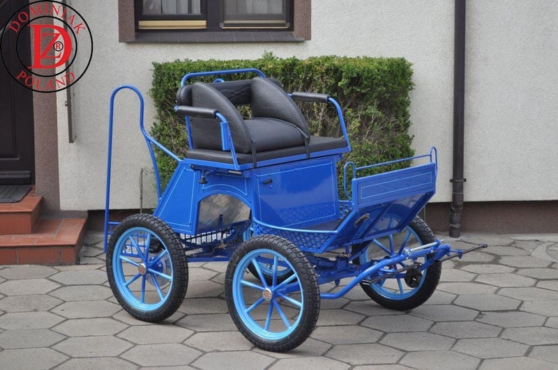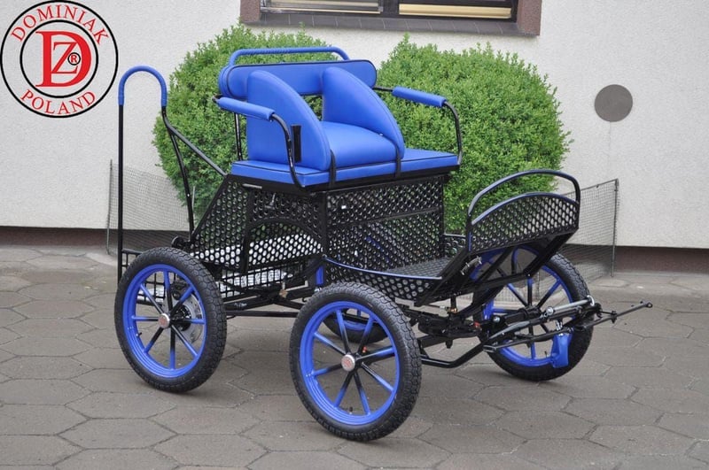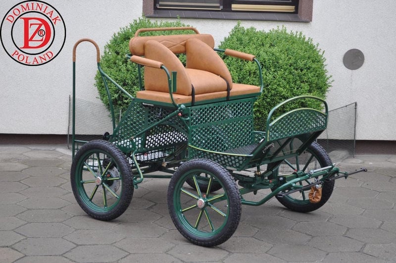 Shetty- und Ponykutsche typ 105 c Die Shetty- und Ponykutsche ist ein geräumige, comfortable Kutsche für bis zu vier Personen. Die vordere Sitzbank bietet Platz für Zwei Personen Die Kutsche kommt standardmäßig in der Einspänner- oder Zweispännerausführung. Deichsel wird direkt mitgeliefert. Die Kutsche ist geeignet für Shettys und Ponys bis zu einem Stockmaß von ca. 127cm. Auststattung: - Sitzbreite: vorne: 87.5 cm, hinten: 57 cm - Sitzhöhe: 92 cm - vordere Sitzbank gefedert - Achsen gefedert - Scheibenbremsen auf der Hinterachse - integrierter Leinenhalter - Peitschenhalter - Zweispännerausführung Gewicht:130 kg Spurbreite: 110 cm Räder: 16" x 16" Scheibenbremsen: hinten