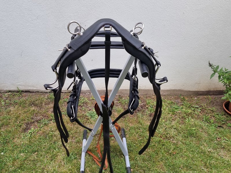 Einspänner Brustblatt-Kutschgeschirr der Sattlerei Meinecke für Warmblut.
