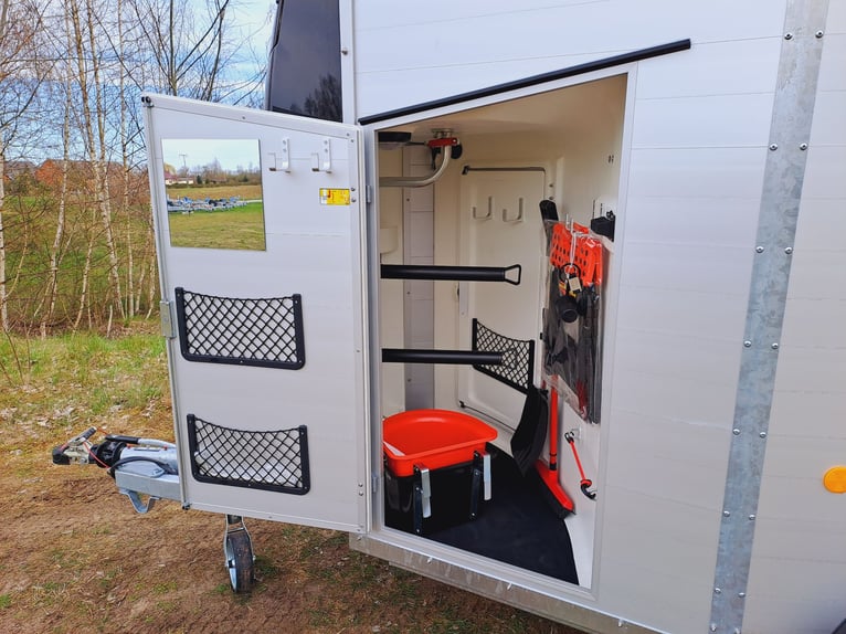 Wir verkaufen einen neuen Böckmann Portax SKA (22) in neuem Design - neues Design - mehr Platz - mehr Innenhöhe - zul. Gesamtgewicht: 2400 kg - Nutzlast: 1300 kg - Innenbreite: 175 cm - Innenlänge: 356 cm - Innenhöhe: 235 cm - WCF- Fahrwerk (Einzelradaufhängung) 100 km/h, - Hinterklappe Flügeltür kombination-seitlich schwenkbar, - Sattelkammer von außen und innen zugänglich - Sattelhalter dreh- und schwenkbar - Mittelpostentrennwand-vorn und hinten schwenkbar, - Trittschutz seitlich, - Seitenpolster, - Schiebefenster seitlich, - Dachfenster, - Panorama Fenster vorn, - 1 x große Einstiegstüren - Planenlift - Automatikstützrad - Preis inkl. MwSt weitere neue und gebrauchte Pferdeanhänger auf Lager! Fahrzeugbriefversand zur Anmeldung gegen 5 € Aufschlag im Vorfeld möglich! Lieferung nach Absprache, Finanzierung und Inzahlungnahme gerne möglich! Besichtigung/ Abholung in 16845 Großderschau nach Absprache unter 033875/909588 jederzeit möglich Öffnungszeiten: Montag - Freitag 8.00 - 17.00 Uhr