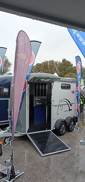 The Cheval Liberté Touring Country is a robust, durable, and practical horse trailer designed to transport two horses safely and comfortably. Built for easy handling and low maintenance, this model is one of the most popular horse trailers in Europe. Equipped with a large front ramp for effortless unloading and extra groom doors for convenient access, the Touring Country ensures smooth and stress-free transport for both horses and riders. The standard version includes many high-quality features: Four sliding windows for optimal ventilation Side padding for comfort and safety Automatic jockey wheel High-mounted brake light for extra visibility Optional equipment includes aluminium wheels and a side tie bar, adding both functionality and style. For added practicality, the Touring Country from stock is equipped with an integrated tack room, offering generous storage space for all your riding gear and essentials — perfect for day trips or longer journeys. All Cheval Liberté horse trailers in this range are built with innovative design and reliable construction, making them the ideal choice for anyone looking for a safe, comfortable, and easy-to-use 2-horse trailer. PRICE: 9441,25 € + VAT