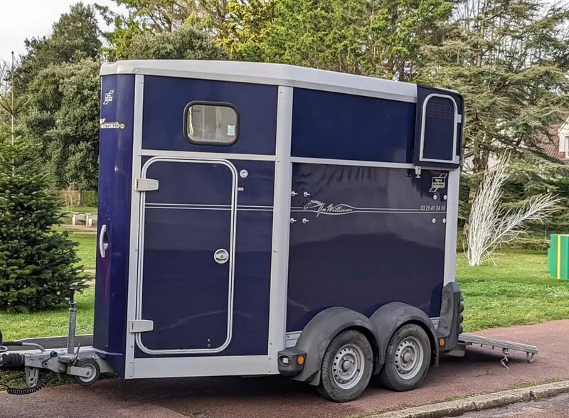 1 Place-1/2 CONFORT. Idéal pour le transport de grand chevaux. Etat: OCCASION Année du modèle: 2016 Couleur: Bleu PTAC : 1600Kg Poids à Vide : 767Kg équipé d’un pont avant et pont arrière
