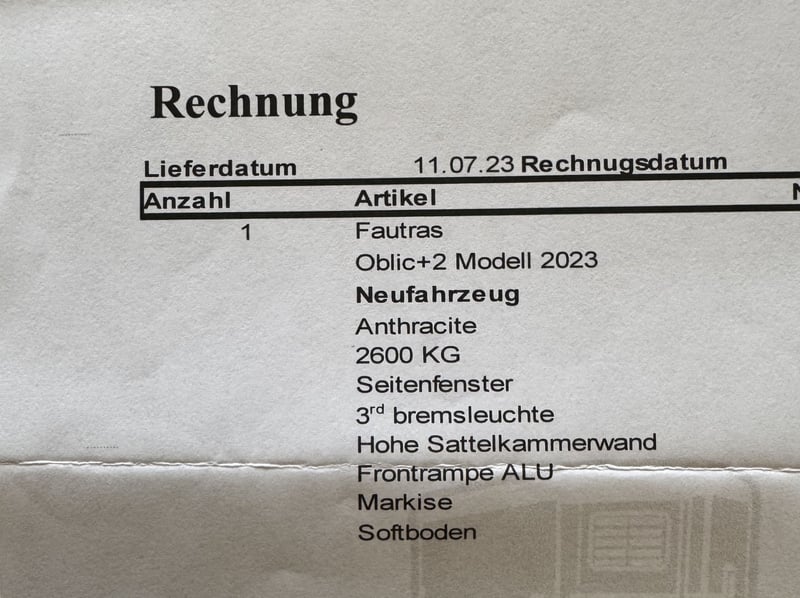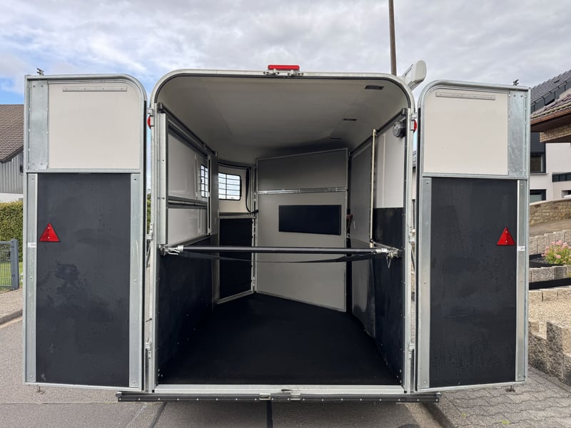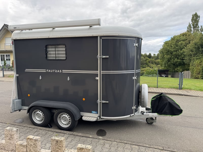 Fautras Oblic +2 Pferdeanhänger 8 Jahre auf die Stahlkonstruktion/ lebenslang auf den Vollkunststoffboden !!!SONDERAUSSTATTUNG!!! - für 2 Großpferde oder 2-3 Islandpferde/ Kleinpferde - BJ 07/ 2023 - Diagonal-/ Schrägsteher - TÜV 09/2027 - Farbe Anthrazit Sonderausstattung: + Softboden + Markise + Großes klappbares Seitenfenster + 3. Bremsleuchte + Frontausstieg ALU + Hohe und verstellbare Sattelkammerwand Der Neupreis liegt derzeit durch die Sonderausstattung bei ca. 21.000€, also bitte nicht vergleichen mit den Neupreisen der gleichen Anhänger in Basisausstattung. Macht mir ein Angebot! • Leergewicht: 1150kg • Gesamtgewicht: 2600kg • Nutzlast: 1450kg • Länge (innen): 3500mm • Länge (gesamt): 4691mm • Breite (innen): 1800mm • Breite (gesamt): 2380mm • Höhe (innen): 2250mm • Höhe (gesamt): 2723mm Das ist kein Notverkauf, wenn der Anhänger nicht weggeht, kann ich ihn beim Händler eintauschen. Privatverkauf - keine Rücknahme - Garantie und Gewährleistung laut Hersteller (8 Jahre auf die Stahlkonstruktion/ lebenslang auf den Vollkunststoffboden) Gekauft wie gesehen! Melde dich gerne per WhatsApp, Anrufe von unbekannten Nummern oder Anonym nehme ich nicht an: 017620130438