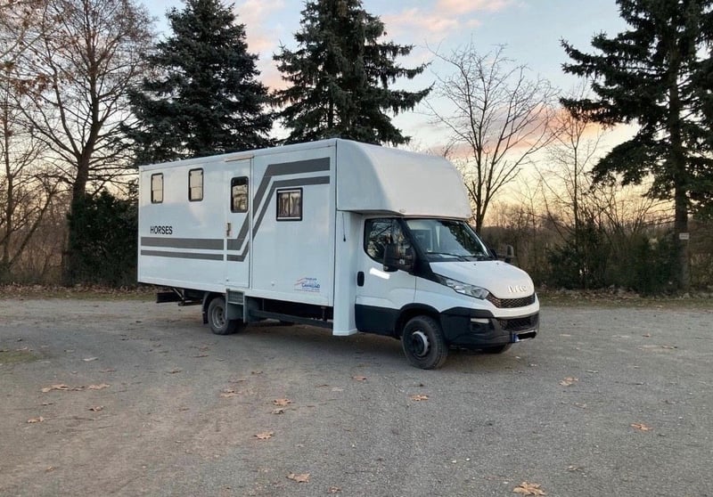 Pferdetransporter Iveco Daily 70C17, mautfrei in Deutschland, Zulassung als Sonder-KFZ Wohnmobil, 3 Pferde, Automatik, Rückfahrkamera, AHK, EZ 09/2015, Ausbau als Pferdetransporter in 2019, 136.000km, TÜV 08/2026, Gesamtgewicht 7,2t, hohe Zuladung, viel Stauraum, Überwachungskamera im Pferdeabteil, Wohnkabine mit bis zu 4 Schlafplätzen, Dusche, Herd, Spüle, Kühlschrank. Das Fahrzeug befindet sich technisch und optisch in sehr gutem Zustand. Tel.: 01520/2790298 Preis: VHS