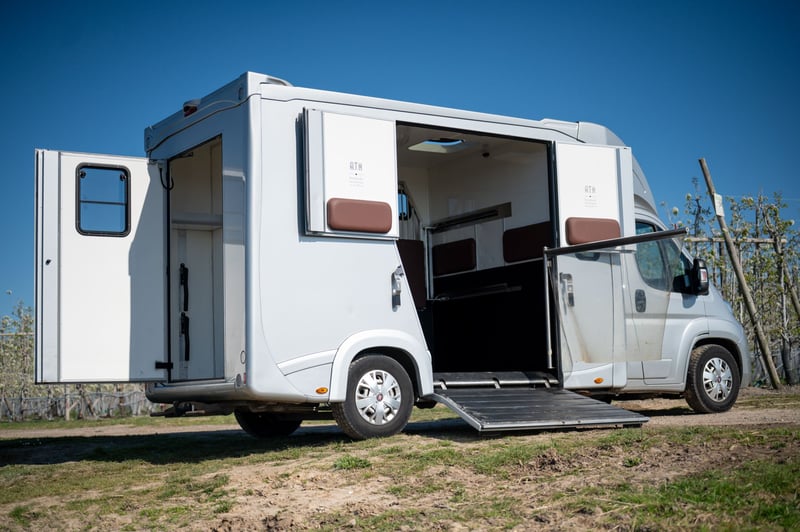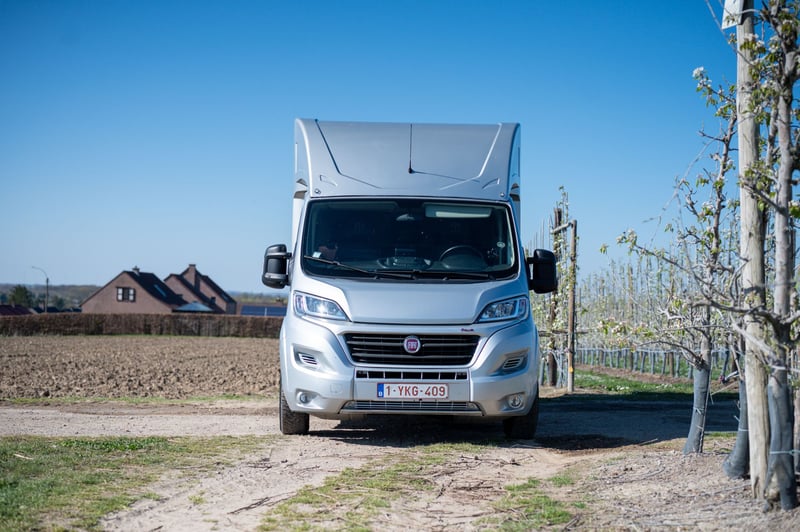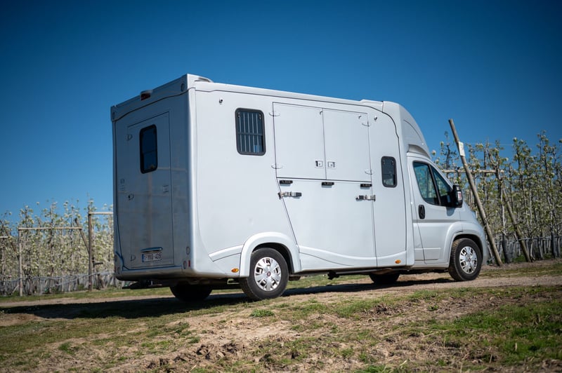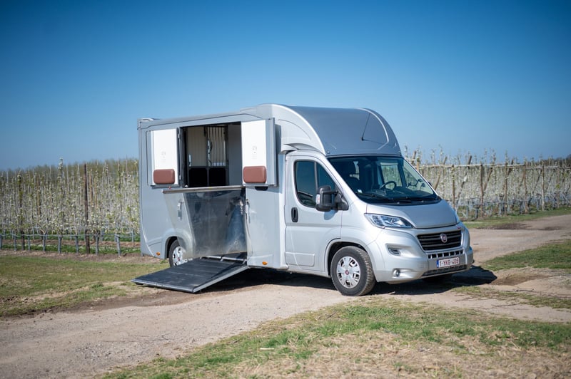 Deze Fiat Ducato 2.3 turbo is te koop van de 2de eigenaar. De luxueuze cabine biedt officieel plaats aan 5 personen en heeft een dubbele cabine met slaapplaats voor 3 personen. Er is een achteruitrijcamera aanwezig die tevens de laadruimte weergeeft. De laadruimte is voorzien van rustgevend blauw licht. De zadelkamer is apart voorzien van verlichting. De huidige kilometerstand bedraagt 196.000 km. Het betreft een hengstenuitvoering met zeer stevig tussenschot. Dit schot kan heel eenvoudig verschoven worden zo krijgt u één grote box voor jonge paarden of merries met veulen. Achteraan hebt u een ruime deur die toegang geeft tot een ruime zadelkamer met 2 zadelsteunen en enkele hoofdstelhouders. Via stevige deuren hebt u toegang tot elk paard afzonderlijk. Bij het laden van het tweede paard kan u deze ruimte afsluiten door een sterke buis met rubberen flap. Zo is het niet noodzakelijk altijd de ramp te sluiten. Deze wagen is uitgerust met trekhaak voor aanhangwagen tot 3 ton.
