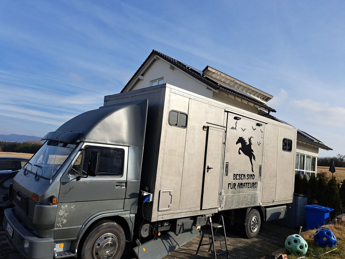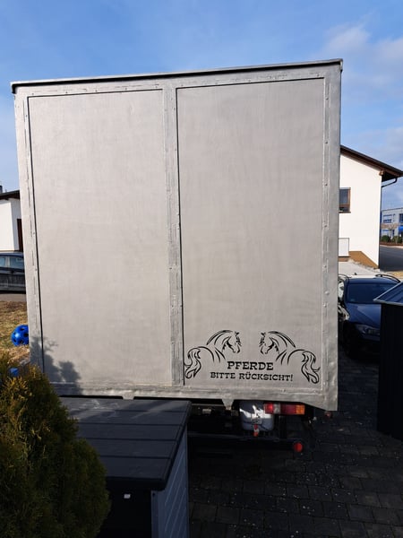 Hallo, ich verkaufe meinen Pferdetransporter BJ 90 Ich finde ihn Ideal für zwei Großpferde oder drei kleinere Pferde. Der Umbau zu drei Boxen total einfach Alu. Der Koffer inklusive Boden sind letztes Jahr, für viel Geld, komplett neu gebaut worden! Das Fahrzeug ist aufgrund des H Kennzeichen sehr günstig im Unterhalt und Maut frei, es darf überall gefahren werden. Letztes Jahr würde das H Kennzeichen beantragt, somit musste eine Vollabnahme beim TÜV gemacht werden was kein Problem war. Neben dem Pferdeabteil hat der LKW ein Wohnabteil mit WC Dusche, Waschbecken, Hubbett, Kühlschrank. 80 liter Frischwassertank und zwei Kochplatten. Die Sitzgruppe ist auch zu einem Bett umbaubar. Im Pferdeabteil ist eine Klimaanlage und ein Lüfter installiert. Rückfahrkamera Kamera im Pferdeabteil Aussen Wassertank 60l Ich verkaufe den LKW nur da ich ein Pferd verkauft habe. Gebaut habe ich ihn, da eine Sute zu groß für alle normalen Hänger war. Der LKW war perfekt für zwei Riesen, man kann in Ruhe mit viel Platz richten, vorallem wenn man allein unterwegs ist und mit zwei in der gleichen Prüfung startet, mega praktisch. Das Wohnabteil erfüllt seinen Zweck, man hat was man zum übernachten benötigt. 2-3 Schlafplätze. Man kann ihn auch einfach umgestalten und als Transporter oder Partywagen nutzen. Bei Fragen gerne melden 01746875007