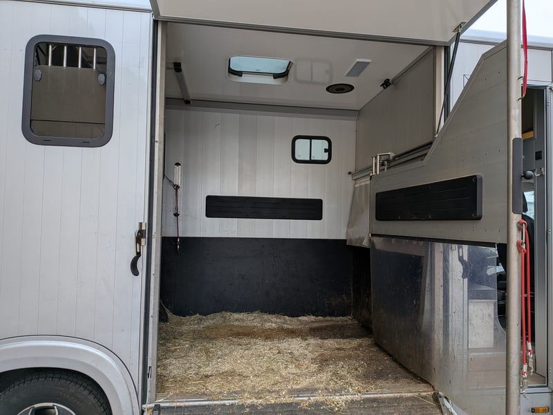 zzgl. Mehrwetsteuer (89.250,00€ brutto) EZ 04/24 11.277km TÜV bis 06/26 Wir geben unseren praktischen Pferdetransporter ab, weil wir uns vergrößert haben. Da er zur Zeit noch gelegentlich benutzt wird, ist er noch nicht gereinigt. Bei Nicht-Gebrauch stand der Transporter immer in der Halle. Die Besonderheit bei unserem Fahrzeug ist, dass er fünf eingetragene Sitzplätze hat und über dem Fahrerraum eine geräumige Schlafmöglichkeit. Der Pferderaum des Compact L Plus Stall Tour ist mit einer hohen, variablen Trennwand, einem 3-Türensystem und einem Durchgang zum Sattelraum ausgestattet. Die große Sattelkammer verfügt über zwei Sattelhalter und genügend Platz für sämtliches Equipment. Den Druchgang zur Sattelkammer haben wir verschlossen, aber die zwei Türen mit Bürstendichtung sind vorhanden und können bei Bedarf wieder eingesetzt werden. Die Hengsttrennwand ist ebenfalls vorhanden, wurde aber kaum von uns benutzt. Durch das 3-Türensystem ist eine flexible Nutzung des Pferderaumes möglich. Weiter Fahrzeugdaten können per Mail oder Telefon erfragt werden, ist nur sehr viel für die Anzeige.