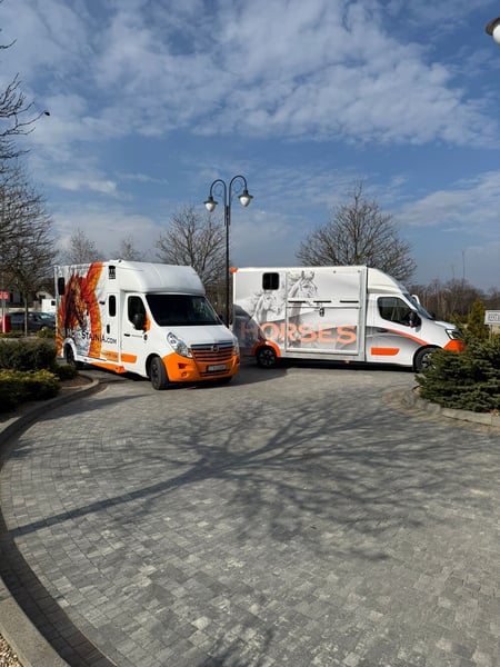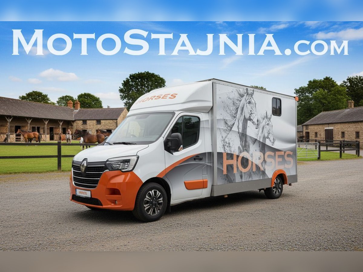 A horse-drawn carriage doesn't have to be boring. This is another project by motostajnia.com. From the very beginning, we focus on durability and reliability — this machine is built to last for many years and hundreds of thousands of kilometers! Year 2023, 81,000 km, 2.3-liter engine with 145 HP. The vehicle has new wheels, full service history, new brakes, air suspension, two cameras (external and internal), and a tow hitch. As a bonus, the set includes a four-wheel trailer with a winch. motostajnia.com emphasizes durability and robustness, combined with original design. The rear doors are 90 cm wide. It features a double-horse box. Warranty on the bodywork is 24 months. Price including VAT (23%). The horse-drawn carriage is parked in Gliwice. Soon, you'll see our advertising campaign — stay tuned! Contact: +48 668 11 33 55.