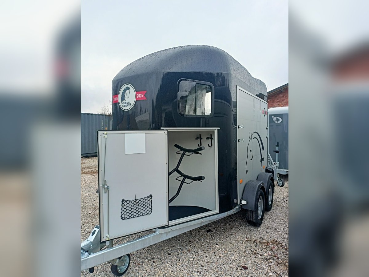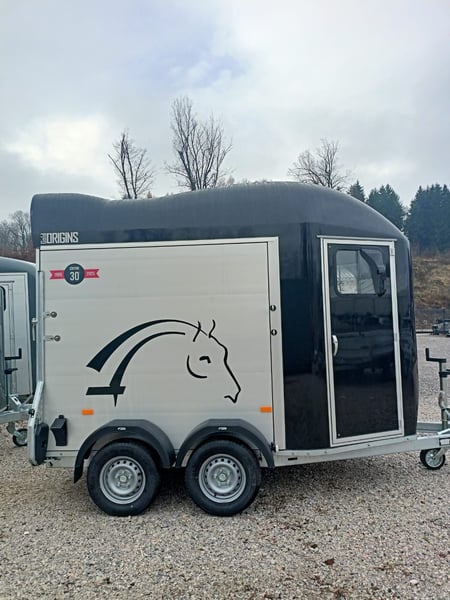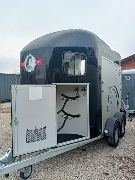 Discover the Gold Origins, the model that replaces GOLD FIRST and GOLD II. This trailer combines the best of both historic models, offering a modern and more comfortable Gold Origins trailer while retaining the recognizable Cheval Liberté design and providing efficient standard equipment, making it an ideal hobby trailer for everyday use. Its optimized unladen weight (starting from 750 kg) allows for a higher maximum authorized weight selectable from 1,100 to 2,000 kg. This makes the Gold Origins perfect for towing with a compact vehicle, without requiring a special driving license. The trailer offers numerous advantages: Spacious interior: Ample length, width, and height, especially at the front, providing more headroom for horses. Optimal ventilation system: Equipped with movable safety glass windows with air deflectors and an automatic ventilated roll-up canvas. Enhanced safety and practicality: Protective padding, non-slip flooring, a ring for hay nets, and multiple attachment points. Ease of use: Large front care doors, spacious padding (optional), automatic jockey wheel, adjustable front and rear partitions in width and height. Standard rear door system: Easier access for horses or equipment. Durable construction: Fully welded, hot-dip galvanized frame with two robust axles. High-quality materials. Tack Room– lockable space for saddles with a rotating saddle holder, two bridle and lead rope holders, document mesh pocket, and mirrors. + HEAD PARTITION + extra rubber mat For more information: Email: info@vprege-repnik.si Phone: +386 40 984 220 / +386 40 705 868 Website: www.vprege-repnik.si 6.940,50 € + VAT