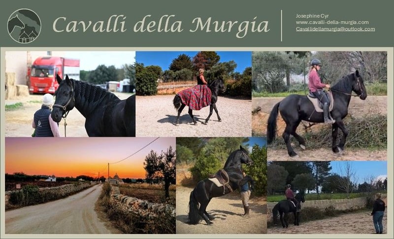 Josephine Cyr bietet in der Nähe von Martina Franca - Italien, Intensivtage ganz nach den Bedürfnissen von Pferd und Reiter an. Je nach Fähigkeiten und dem Ausbildungsstand werden die Lerneinheiten angepasst. Ein zentraler Schwerpunkt unserer Intensivkurse liegt in der Mobilisation und Flexionsarbeit – zwei elementaren Bausteinen für ein gesundes, durchlässiges und leichtes Reitpferd. Gemeinsam mit Josephine Cyr erarbeiten Sie vom Boden und im Sattel die Grundlagen feiner Kommunikation: Durch gezielte Mobilisation wird das Pferd dazu befähigt, einzelne Körperpartien unabhängig voneinander zu bewegen. Nur so können korrekte Flexionen entstehen – der Schlüssel zu Losgelassenheit, Balance und einem weichen Genick. Seitliche und gerade Flexionen helfen, Muskulatur zu lösen, Verspannungen abzubauen und das Pferd sowohl körperlich als auch mental auf eine harmonische Zusammenarbeit vorzubereiten. Aufbauend darauf vertiefen wir die Arbeit mit Seitengängen an der Hand, um Beweglichkeit, Kraft und Körperbewusstsein des Pferdes gezielt zu fördern. Individuell abgestimmt auf den Ausbildungsstand von Pferd und Reiter gestaltet Josephine Cyr einzigartige Intensivtrainings unter der warmen Sonne Italiens. Inmitten malerischer Landschaften erleben Sie Unterrichtseinheiten, die sich flexibel nach Ihrem Gefühl und den Bedürfnissen Ihres Pferdes richten. Für Teilnehmer, die ihrem Aufenthalt in Apulien eine besondere Note verleihen möchten, bieten wir ein optionales Zusatzpaket an, das Ihren Intensivtagen einen unvergesslichen Rahmen schenkt. Auf Wunsch begleitet ein Fotograf ausgewählte Trainingseinheiten und hält die schönsten Momente zwischen Ihnen und Ihrem Pferd fest – sei es in der Arbeit am Boden, in stillen Augenblicken der Verbindung oder in der eindrucksvollen Kulisse rund um Martina Franca. So entstehen hochwertige Erinnerungsbilder, die Ihren Fortschritt dokumentieren und zugleich die besondere Atmosphäre dieser Tage einfangen. Ergänzt wird dieses Paket durch liebevoll ausgewählte kulinarische und kulturelle Freizeitangebote. Abseits des Trainings haben Sie die Möglichkeit, regionale Köstlichkeiten zu genießen, traditionelle Restaurants zu besuchen oder lokale Spezialitäten direkt beim Erzeuger zu entdecken. Wer kulturell interessiert ist, kann Museen oder historische Sehenswürdigkeiten der Region erkunden und so die reiche Geschichte Apuliens hautnah erleben. Ein besonderes Highlight stellt ein Besuch bei den Carabinieri dar, der spannende Einblicke hinter die Kulissen dieser traditionsreichen Institution bietet. Dieses Zusatzangebot ist ideal für alle, die ihren Aufenthalt nicht nur trainierend, sondern auch kulturell und genussvoll gestalten möchten. Eine Unterkunft können wir nicht bieten, jedoch unterstützen wir Sie sehr gerne bei der Planung und Organisation Ihrer Reise. Alle Infos im Überblick • Intensivtage individuell nach Fähigkeiten und Bedürfnissen bei Josephine Cyr • Zwei bis drei Einheiten pro Tag • Zentraler Schwerpunkt auf Mobilisation und Flexionsarbeit • Eigenes Pferd oder Schulpferd • Optionales Zusatzpaket • Martina Franca - Italien • Preis auf Anfrage