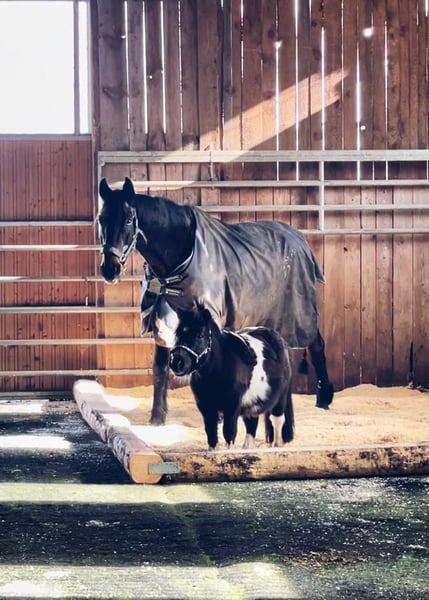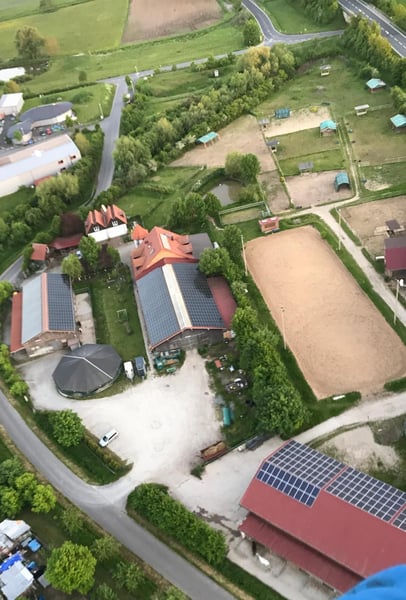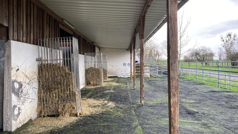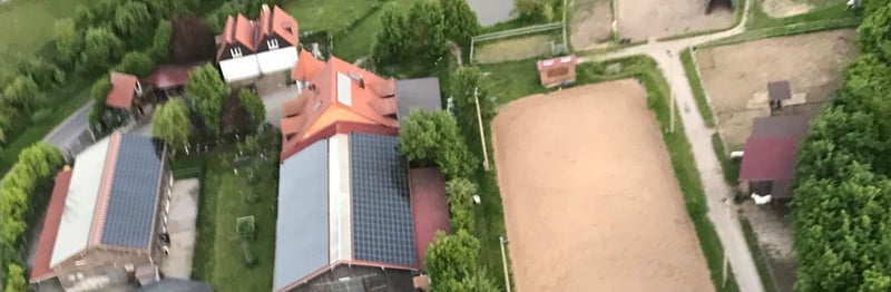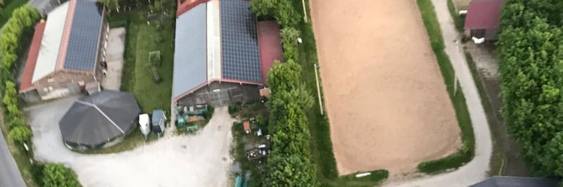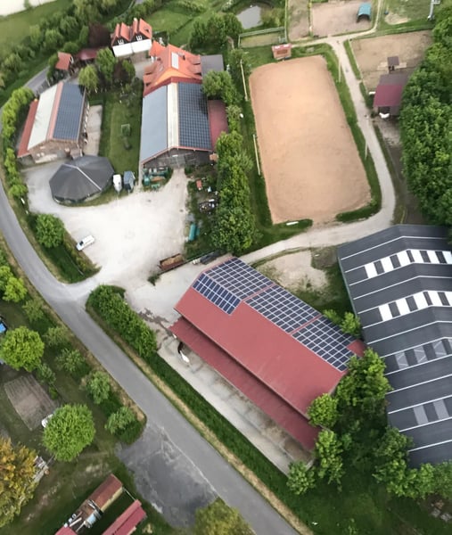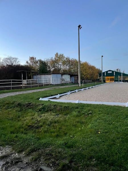 Complete horse stable with 15 paddock boxes, 8 open stalls, an indoor riding hall, and a dressage ar