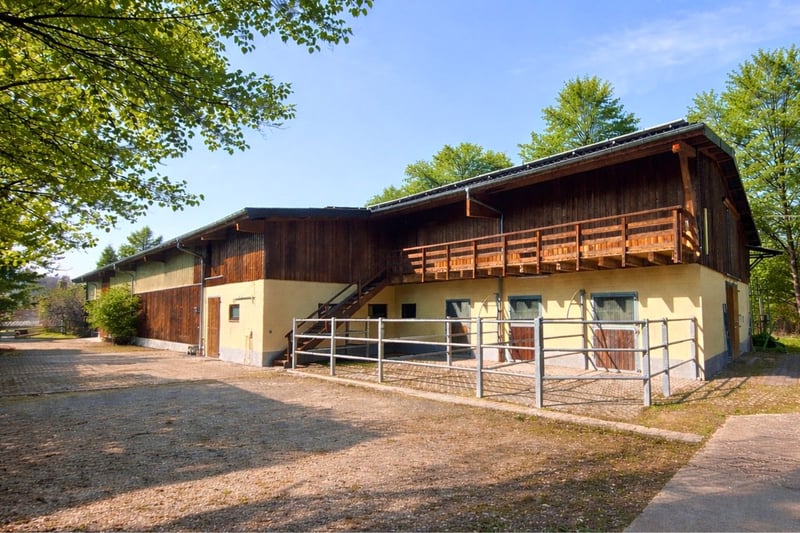 Welcome to this exceptional estate in Witzenhausen, perfectly combining dream living with professional horsekeeping. Located in a peaceful, natural setting, this well-maintained riding farm offers everything horse enthusiasts could wish for. The property impresses with a thoughtfully designed equestrian infrastructure, a park-like garden, and a cozy residence that provides ample space for the entire family and guests. Every detail has been carefully considered to blend functionality with a welcoming atmosphere. Highlights at a glance: - Equestrian Facilities: Professional riding arena (16x32 m) with sand/ fleece surface and arena mirror. - 10,000-liter rainwater cistern for arena irrigation and utility water. - 14 spacious stables – 9 paddock boxes plus 5 additional outdoor boxes. - The stable area is complemented by: * Tack room, utility room, separate WC, and a large hay and straw storage above the stables. - Property approx. 6,359 m² – approximately 3,000 m² of paved turnout areas for the horses. - Photovoltaic system with attractive feed-in tariff (details in the exposé). - Central oil heating. Living Comfort: The house, built in 1970 with solid construction, offers a total of approximately 410 m², including about 336 m² of living space and 74 m² of utility area. The layout spans the ground floor and basement, providing a total of 11 rooms. In the basement, there are two separate apartments totaling around 126 m², offering flexible use options such as guest accommodation, staff housing, or rental income. Additionally, the basement includes several functional auxiliary rooms, enhancing the practicality of the property, such as: - Garage with space for up to 4 vehicles, - Workshop, - Heating room, - Storage rooms, - Cloakroom. Besides the integrated garage, additional outdoor parking spaces are available for several vehicles. Location: The estate is situated in a quiet district of Witzenhausen, nestled in the picturesque landscape of the Werra Valley in the Werra-Meißner district. Despite its peaceful, natural setting, the property has excellent transport connections. The nearby A7 motorway and federal road B80 provide access to Kassel and Göttingen in about 30 minutes. The local train station offers hourly connections in both directions. The village itself features a primary school, kindergarten, and a grocery store. Forest and riding trails start directly from the estate. Key Data & Conditions: - Purchase Price: €980,000 - Commission: 2% plus applicable VAT (to be paid by the buyer) - Available from: By arrangement - Energy Certificate: Available for viewing Important Notes & Viewing: Please understand that, to protect the owners' privacy, detailed documents and the exact address will only be provided upon submission of your full contact details. Viewing appointments: Visits are only possible by prior arrangement and upon presentation of proof of funds or a financing confirmation. Request the Exposé: The complete exposé with additional images, floor plans, and technical data can be requested directly on our website: www.funken-reitsportimmobilien.ch