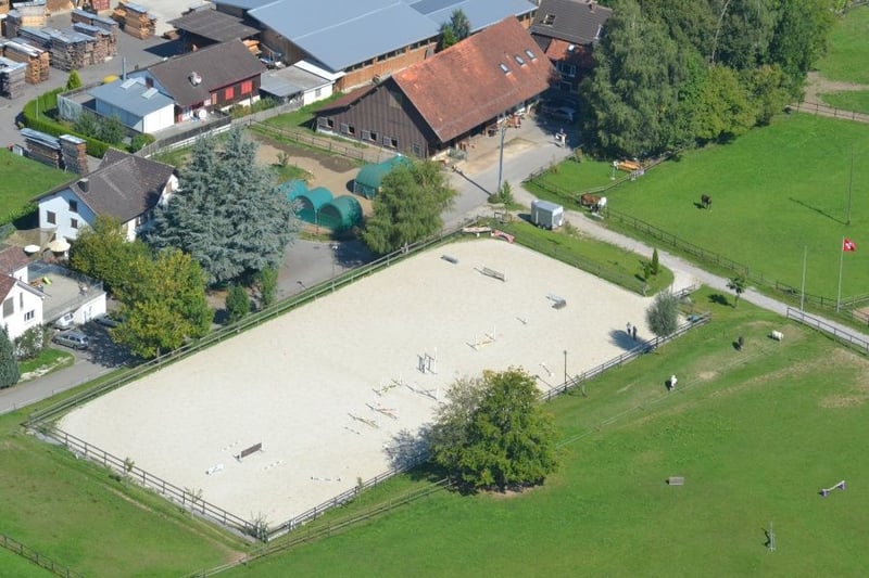 Nestled within an idyllic landscape of gentle hills, this exceptional estate is a true gem for horse lovers and nature enthusiasts alike. Located in a peaceful rural setting, it remains easily accessible between Bischofszell, Waldkirch, and St. Gallen. The property includes a spacious seven-room main residence with approximately 184 m² of living space, as well as a large stable building currently housing 11 horse stalls. Integrated into the stable is an attractive 5.5-room duplex apartment with around 146 m² of living space—ideal for operators, family members, or staff. The offering is further enhanced by an approved construction project (February 2023) for a new stable with an additional nine horse stalls on a third building plot. Approximately 3.3 hectares of additional pasture land provide versatile usage options. Beyond expansive, well-maintained pastures, the estate features a thoughtfully designed show jumping arena with natural obstacles such as walls, steps, and tree trunks. An indoor riding arena measuring about 70 × 35 meters offers ideal training conditions. Numerous fruit and nut trees, along with a small woodland, provide pleasant shade and emphasize the property's natural character. The stunning location offers riders and horses a diverse trail riding area immersed in nature, tranquility, and numerous exploration opportunities. This special property is perfect for connoisseurs of the extraordinary who wish to combine living, nature, and horsekeeping. We would be pleased to provide further information and a detailed exposé upon serious inquiry. Note: The property is situated in an agricultural zone and is subject to the rural land law (BGBB). Purchase is only possible for self-managers, and proof of this status is required to obtain the purchase permit from the Thurgau Department of Agriculture. Your contact: Dario Tinner +41 79 921 67 84 dario@multistudio.ch www.multistudio.ch