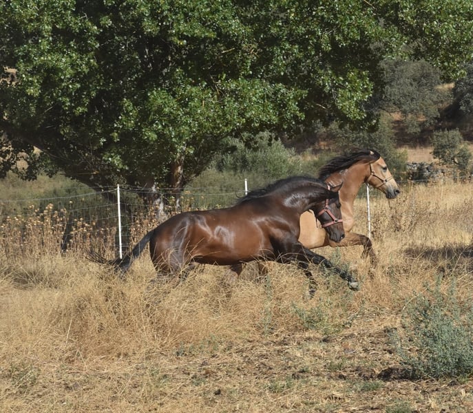 Wir bieten Pensionsplätze ab 300 € für Pferde in Halbfreiheit an: Tagsüber verbringen die Pferde in kleinen Gruppen draußen, nachts werden sie jeweils in ihren eigenen Stall gebracht, damit sie in Ruhe fressen können. Auf Wunsch bieten wir auch eine 24-Stunden-Haltung in der Herde in Freilauf an. Unser Angebot richtet sich sowohl an Fohlen, erwachsene Pferde als auch an ältere Pferde, die nicht mehr geritten werden. Wir verfügen über professionelle Reiter und bieten Pferdetraining sowie Turniervorstellungen auf allen Niveaus an (Preise auf Anfrage). Wir garantieren glückliche Pferde sowie die beste Betreuung und 24-Stunden-Überwachung. www.iberianpremiumhorses.com