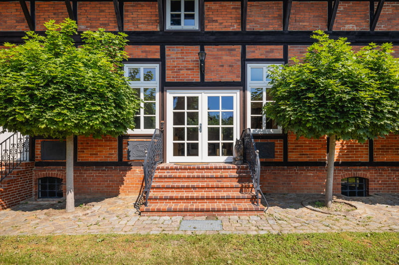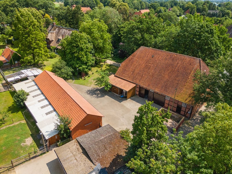 Horse property and unique luxury estate with exclusive residential buildings 1 hour's drive south-east of Hamburg - privately owned. Icelandic horse farm (stud farm) with forest and meadow areas in the district of Lüneburg in the Elbe valley floodplain of Bleckede. + Oak half-timbered farm with an impressive residential building, half-timbered barn and outbuildings Plot area: approx. 6,700 sqm, park-like plot in an idyllic location on the edge of the village incl. 2 ha directly adjoining pasture land (1 ha of which is leased land) for the purchase price of 1,995,000 euros. + Optional purchase of 10 ha of directly adjoining own land and a further 18 ha in the village area possible. + Riding hall and dressage arena for use within 400m in the village possible + Oval track, indoor riding arena and dressage arena for use on Icelandic horse farm 5 km away possible + Small 20 m x 50 m oval track available + Unrestricted riding area starting from the edge of the village with the possibility of hours of riding in the fields and woods. + Construction of an indoor riding arena 15m x 30m or riding arena 20m x 40m can be realized without privileges + Living and usable area approx. 683 sqm on first floor and upper floor, plus 75 sqm expansion reserve with possible with listed building consent. (preliminary talks have been held) + Granny apartment (70 sqm) + Stately garden with garden ponds and pavilion + Half-timbered barn with 270 sqm usable area and sufficient space for, among other things, conversion into an exercise hall with 15m x 15m or installation of at least 12 horse boxes, expansion of vacation apartments, etc. + Small animal barn/remise with 210 sqm for animal husbandry and carports + Pigsty converted into hobby room, utility kitchen, garden room + Open horse stables and sand paddocks + Optional purchase of converted granary with coach house, directly adjacent, possible. + Plot area: approx. 925 sqm + Total living space approx. 210 sqm on first floor and upper floor + Wagon shed floor space: 50 sqm for cars + Wide range of possible uses (horse farm, seminar center, therapy farm, vacation apartments) + Water sports facilities, wonderful nature for outdoor activities, golf course nearby FACILITIES: Main house: Imposing half-timbered oak house with facing brickwork, wooden beamed ceilings, wooden windows, wooden staircase, thatched roof, marble floors throughout the first floor + Two-sided open fireplace can be used from the living room and fireplace room. + Small wood-burning stove in the spacious kitchen. + Beautiful and impressive library with built-in bookshelves, floor-to-ceiling glass cabinets, billiard table and high-quality parquet flooring in the attic. + Open air space with gallery at the staircase to the upper floor + Pleasant room heights between 2.40 m and 3.70 m Optional purchase of granary: Fantastically converted granary with small library (optional purchase) + 2-storey construction completely converted for residential use + Loft character on the first floor + Full cellar approx. 100 sqm with vaulted ceiling Half-timbered walls with facing brickwork, wooden beamed ceilings, wooden windows, wooden staircase, parquet flooring on the ground floor Both residential buildings fully connected (gas, electricity, water/waste water, telephone, fiber optics) LOCATION: For sale is a unique rural property on the edge of the Elbtalaue in the eastern district of Lüneburg with ideal suitability as a horse property or exclusive country estate. The Icelandic horse stud with forest and meadow areas (up to 30 ha) is 14 km away from the world-famous Icelandic horse stud for sport and breeding in Ellringen Location: Eastern district of Lüneburg, Lower Saxony 20 minutes by car to Lüneburg city center 60 minutes by car to Hamburg city center Federal state: Lower Saxony County/District: County of Lüneburg Community/town: Town of Bleckede/ district of Karze Bleckede is a small town with approx. 9,700 inhabitants. The half-timbered town is home to the Elbtalaue biosphere reserve in the castle. Bleckede has a very good infrastructure. In addition to the restaurants and retail stores in the shopping streets, there are a large number of local suppliers near the town center. All types of schools are represented here in the school center, as well as retirement homes and kindergartens in the town and the districts. www.bleckede.de/home/leben-in-bleckede/wirtschaft-wohnen/wirtschaft.aspx Supra-local connections: Federal highway B 209 approx. 13 km away Federal highway A 39 approx. 23 km away Lüneburg train station/ approx. 22 km distance/20min Connection to public transportation/Metronom Hamburg Hamburg airport approx. 73 km away City center Lüneburg approx. 19 km distance/20min Hamburg city center approx. 64 km distance/ 1 hr. Public and express bus connections available. Golf course Schloss Lüdersburg approx. 8 km away