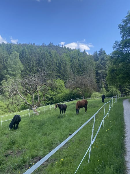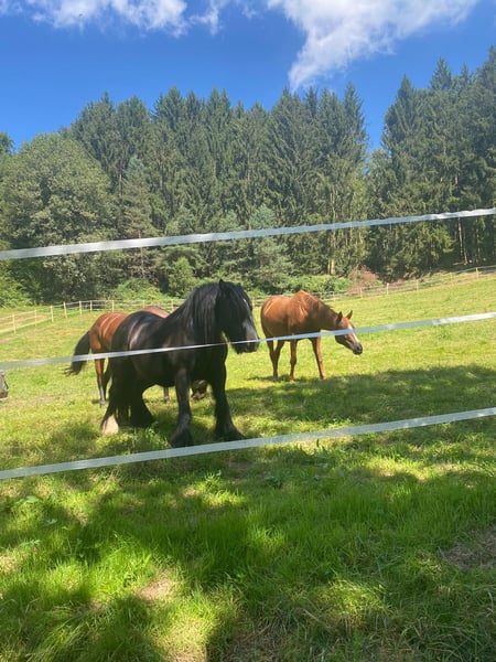 Wir haben in unserem schönen Offenstall 1 - 2 Plätze frei. Wir haben einen befestigten Paddock für den Winter und viele schöne Sommerkoppeln. Auch für Rentner gut geeignet, da die Koppeln nicht zu steil sind. Da ich selbst einen COPD‘ler habe, sind wir auch für Allergiker geeignet. Wir füttern unser eigenes selbstgemachtes Heu und bedampfen es auch. Der Preis gilt für Mithilfe im Stall. Es ist auch Vollpension gegen Aufpreis möglich. Bei Fragen meldet euch gerne.