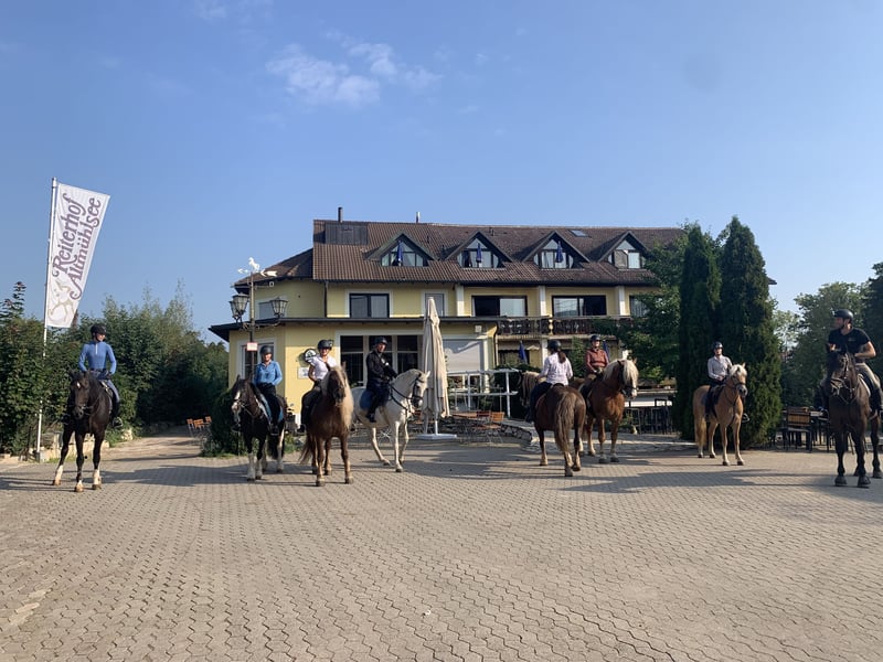Leiter des Reitstalls/Reitlehrer (m/w/d) gesucht. Für unseren ca. 40 Pferde umfassenden Reitbetrieb (15 Schulpferde, 15 Zucht-und Aufzuchtpferde, 10 Privatpferde) suchen wir einen geeigneten Reitlehrer zur Leitung und Führung unseres Reitstalls auf unserer Hotel- und Ferienanlage am Altmühlsee in Nordbayern. Das Aufgabengebiet umfasst die Organisation und Durchführung des täglichen Reitunterrichts, Anleiten der Mitarbeiter, Überwachung und Organisation der Fütterung und Stallarbeiten, Berntwortung für die Instandhaltung der gesamten Reitanlage, Organisation und Durchführung diverser Sonderveranstaltungen, etc. Unser Hotel ist spezialisiert auf Reiterurlaub für Familien mit Kindern und Erwachsene und ist in den letzten 50 Jahren kontinuierlich auf einem landwirtschaftlichen Hof gewachsen. Heute umfasst das Hotel 27 Zimmer und 10 Ferienwohnungen, Restaurant, Schwimmbad, 20x40m Reithalle, Allwetterplatz, Geländestrecke am Hof für Vielseitigkeit, Jagdreiten und Fahren, sowie 30 ha Grünland für Koppeln und Bioheu Anbau. Ein Lebenspartner kann eventuell auch in unserer Gastronomie oder Verwaltung tätig werden, in der Umgebung gibt es aber auch zahlreiche, namhafte Industriebetriebe aller Branchen dafür zur Auswahl. Falls erforderlich bieten wir Unterkunft und Verpflegung und sind auch falls gewünscht bei der Wohnungssuche behilflich. Eigenes Pferd kann selbstverständlich mitgebracht werden. Mehr Info unter: Www.reiterhof-altmuehlsee.de