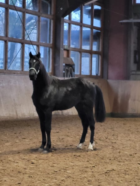For sale: a young Mecklenburg Warmblood stallion, born in 2024, in an elegant black coat. This promising young stallion already demonstrates considerable potential. With his harmonious conformation, balanced temperament, and attractive appearance, he is ideally suited for high-level dressage. The stallion is very lovable and highly sociable with people. A true talent for the future, which will realize his full potential with the right training. If interested, I look forward to hearing from you.