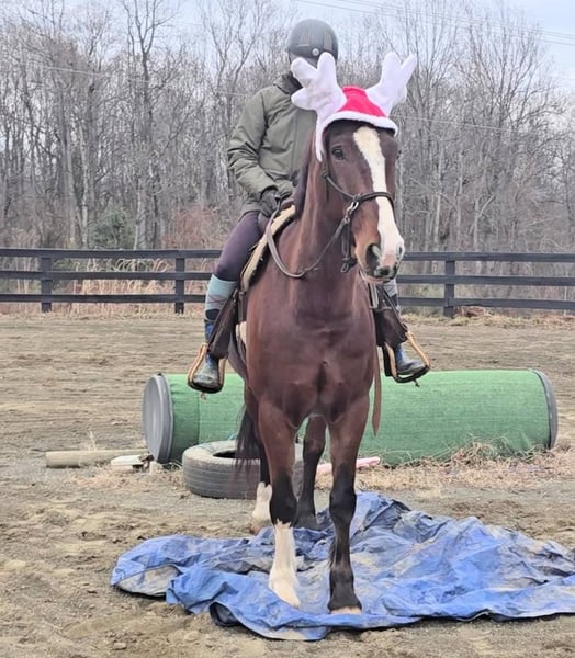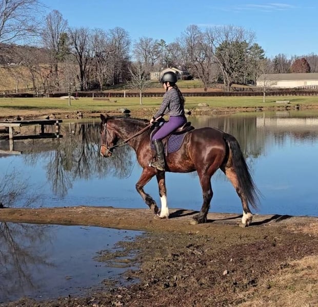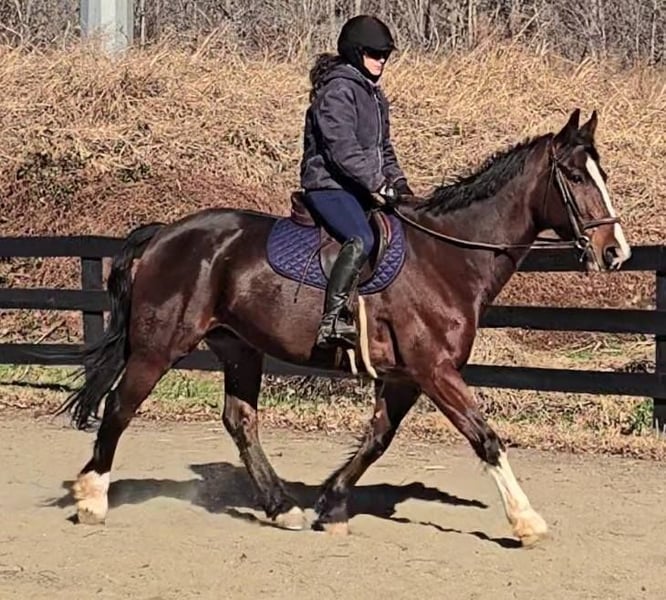 "AVAILABLE ON ONLINE HORSE AUCTION AT www DOT MagicHorseAuction DOT com BIDDING OPEN NOW thru TUESDAY | December 9TH! - BUY IT NOW AVAILABLE! *Final price will be determined on auction site* CONSIGNOR CONTACT INFO: Nicole Ingrassia 571-289-2947 LOCATION: Jeffersonton, VA "Looking for the perfect horse and didn't want to compromise? Well, now you don't have to, because Silas is the total package! *Brains* *Beauty* *Athleticism* This sporty gelding is a 7 year old simply stunning, chromed out, mahogany bay American Warmblood gelding (Clydesdale cross) standing at a lanky 16.1h with a correct, uphill build, sporty athleticism and a very quiet, agreeable, amateur friendly, laid back, sweet disposition. This sweetie has a dreamy canter, picks up his leads easily, and he has scope galore over jumps and he loves the trails. In my opinion, he is older lady safe but younger lady interesting (and yes, husband safe) and quiet enough for the whole family. While he is not a packer yet, he seems suitable for just about anyone due to his quiet and willing nature. He is shown us no spook no buck no lunge/prep and been a no nonsense kind of guy suitable for all rider levels. We have taken this gelding on trail rides, cross-country schooling, and through fire/smoke and other challenges, and he has demonstrated a wonderful disposition combined with a steady temperament and oodles of athleticism. In a simple word, Silas is so much fun! He is a chill dude and would be just as happy to live a slower-paced life too, but if you want to gallop over fences, hill top, foxhunt, or jump a course of fences, he will also be happy to comply. He has a dreamy, smooth athletic canter that is fluid and smooth like a gazelle (only a lot slower), and he rides in a simple snaffle. We have ridden him in a halter or a bridle, english or western, and he has been the same off-property as he is at home. He is soft in his mouth and not strong at all, and he has great transitions. He loves the trails and he is content to meander through the woods and cross creeks. Silas does not need to be lunged or ridden every day to maintain his composure. I can picture him as being the ultimate foxhunting horse, hilltopper, or even guest and husband/family horse as needed or wanted or he a lovely all-arounder for an amateur rider. Silas is also very smooth to ride and comfortable. His WTC are lovely and easy to sit, and he picks up the correct leads very easily. Silas is an incredible horse with an incredible disposition and amount of try. If you've been looking for that one in a million unicorn, in my humble opinion he makes the cut. Silas has no blemishes, and he is sound and healthy and not on maintenance. Silas had a recent vet check prior to the auction with clean results. He is up-to-date on dental, vaccines, coggins, deworming, and just had a fresh set of shoes put on. Silas has no vices at all and he is easy to have around, he can live in or out and gets along well with other horses. He has great ground manners and is wonderful to work around and is very polite, easy to catch, friendly, and a sweet mild-mannered gelding. He does not have reg. papers currently, but his age of 7 coming 8 has been verified by both vet & dentist, and he is eligible to be registered with American Warmblood Society if his new owner wishes. Silas comes with 1 week of free board, and he can be boarded at our farm after that time as well. We can board for the holidays. We can help with arranging shipping nationwide or to Canada. If you have any questions or interest in Silas, we encourage you to reach out: 57l2892947, thank you!