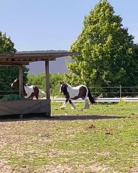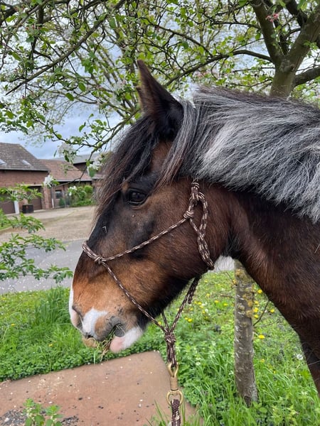 Silky Parcifal is a well-trained, athletic Irish Cob (Tinker) who masters all the elements of elementary dressage and is being introduced to medium-level dressage movements. He moves confidently in the field and is capable of handling small jumps outdoors. Trail riding, horsemanship, and calmness training are enjoyable diversions for him. He is not suitable as a show jumper. He comfortably integrates into both same- and mixed-gender herds, is socially well-adjusted, and easy to include. Currently, he has daily turnout with free access to hay, and at night he is stabled in a box with a weight-appropriate hay ration. Year-round pasture turnout is also possible. He is a hardy and healthy horse who enjoys being part of a herd. An equine health certificate with X-rays is available for review. Silky Parcifal is a friendly and approachable horse that seeks a rider who understands forward-downward riding, aids based on weight, and maintaining a calm hand. Trust and confidence are essential to him in human interactions, which is characteristic of a classic Irish Cob. He is not suitable as a children's horse and only conditionally suitable for young riders. Requests from clubs and riding schools are therefore not preferred. Silky Parcifal will only be sold into private hands, where his potential is nurtured, his herd life is ensured, and reliable care is guaranteed.
