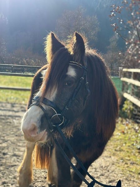✨ Irish Cob Wallach – bildhübscher Jungstar in Sonderfarbe sucht neues Zuhause ✨ Rasse: Irish Cob Geschlecht: Wallach Geboren: 06.05.2023 Stockmaß: Aktuell ca. 142 cm – wächst noch, voraussichtliches Endmaß 146–148 cm Farbe: Sonderfarbe stichelhaarig braun, hübsche Blesse & vier weiße Beine – echter Hingucker Abstammung: Vollständig vorhanden Beschreibung Dieser bezaubernde Irish-Cob-Wallach in seltener stichelhaariger Braunfärbung ist nicht nur optisch ein Blickfang, sondern überzeugt auch durch seinen außergewöhnlich lieben, ruhigen und menschenbezogenen Charakter. Er ist artgerecht im Herdenverband aufgewachsen, bestens sozialisiert und sehr verträglich mit Artgenossen. Ausbildungsstand Trotz seines jungen Alters wurde er schonend und altersgerecht ausgebildet. Er kennt bereits: Sattel und Zaumzeug Bodenarbeit Longenarbeit in allen drei Grundgangarten Reitergewicht Spaziergänge außerhalb des Hofes Bei Spaziergängen zeigt er sich absolut unerschrocken und souverän. Er kennt Züge, Traktoren, Hunde, Katzen, Kühe, Radfahrer und vieles mehr – all das bringt ihn nicht aus der Ruhe. Im täglichen Umgang bleibt er brav, zuverlässig und geduldig. Auch beim Putzen oder im Umgang mit Kindern zeigt er sich stets gelassen. Er gibt brav alle Hufe, ist regelmäßig dem Hufschmied vorgestellt worden und läuft problemlos barhuf. Charakter sehr liebenswert und menschenbezogen ruhig, gelassen und nervenstark bestens sozialisiert & herdensicher ideal für Familien, Kinder und Therapie geeignet Gesundheit regelmäßig entwurmt geimpft (Influenza & Tetanus) gesund, ohne Unarten oder Auffälligkeiten Weitere Informationen Einstweilen darf er weiterhin seine Zeit in der Herde genießen. Sollte sich zeitnah kein neues Zuhause finden, wird er im Frühjahr schonend angeritten, was seine Einsatzmöglichkeiten weiter erhöht. Eine Besichtigung ist jederzeit nach vorheriger Absprache möglich, und ein Transport kann auf Wunsch gerne organisiert werden. Hat er Ihre Aufmerksamkeit erregt? Gerne sende ich Videos oder beantworte weitere Fragen.