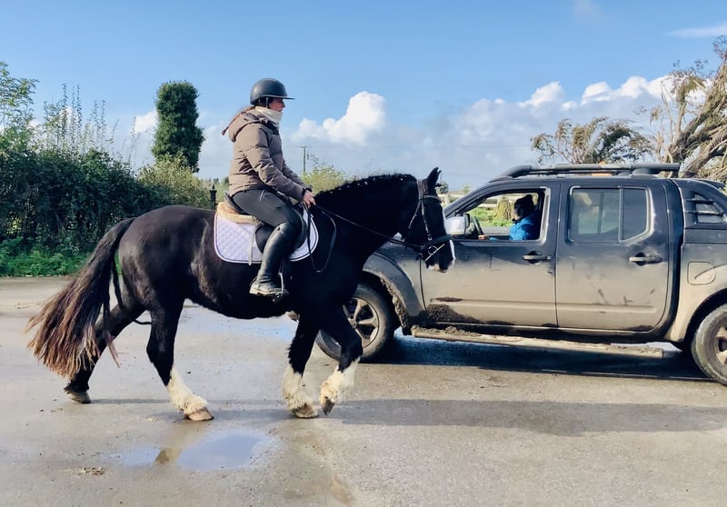 Henry | Aufstrebender 5-jähriger 15hh Schwarzer Cob-Wallach | Stilvoll, Intelligent und Vielseitig Wir stellen Henry vor, einen aufstrebenden fünfjährigen schwarzen Cob-Wallach mit Ausstrahlung, Talent und einem wunderbaren Charakter. Mit 15hh ist Henry ein schön gebauter, gut proportionierter Cob mit einem starken, kompakten Körperbau und dem typischen Cob-Charme. Er ist mutig, selbstbewusst und vorwärtsdenkenden, gleichzeitig aber auch umsichtig und zuverlässig, was das Reiten zu einem echten Vergnügen macht. Henry bewegt sich natürlich geschmeidig, ausgewogen und ausdrucksstark. Er liebt die Arbeit unter dem Sattel und reagiert aufmerksam auf alles, was von ihm verlangt wird. Sein Wille, zu gefallen, zeichnet ihn besonders aus. Egal ob Dressur, Springen oder Ausritte, Henry geht jede Aufgabe mit Begeisterung an. Er ist mutig über Hindernisse und zeigt großes Potenzial für verschiedene Disziplinen, von Reitclub-Aktivitäten über Showeinsätze bis hin zu einem aktiven, vielseitigen Freizeitpferd. Dieser Cob ist auch am Boden unkompliziert. Henry lässt sich leicht fangen, verladen und beschlagen und geht gelassen mit neuen Situationen um. Beim Ausreiten ist er sicher – sowohl allein als auch in der Gruppe – und völlig verkehrssicher. Seine ruhige, ausgeglichene Art in Kombination mit seinem mutigen Wesen macht ihn zu einem sicheren und angenehmen Partner für erfahrene Freizeitreiter ebenso wie für versierte Amateure. Henry hat keinerlei Stallvices und steht für jede tierärztliche Untersuchung offen. Der Transport zu Ihrem Stall innerhalb des Vereinigten Königreichs ist im Preis inbegriffen, sodass der Umzug stressfrei verläuft. Mit seiner Kombination aus Stil, Talent und einem liebenswerten Wesen ist Henry ein echter Cob, der eine vielversprechende Zukunft vor sich hat und jedem Reiter Freude bereiten wird. Um Henry in Aktion zu sehen, scrollen Sie bitte nach unten, um sein Video anzuschauen. Für weitere Informationen oder zur Vereinbarung eines Besichtigungstermins erreichen Sie mich jederzeit unter +353 86 807 7626 oder per E-Mail an gertytynan@gmail.com.
